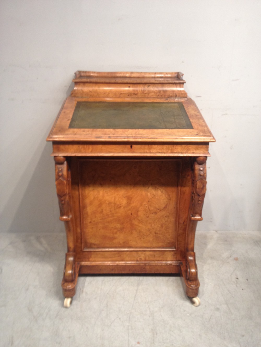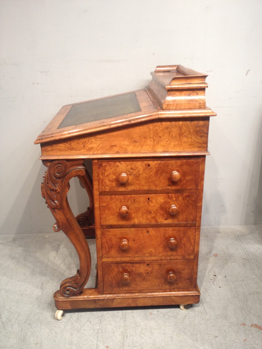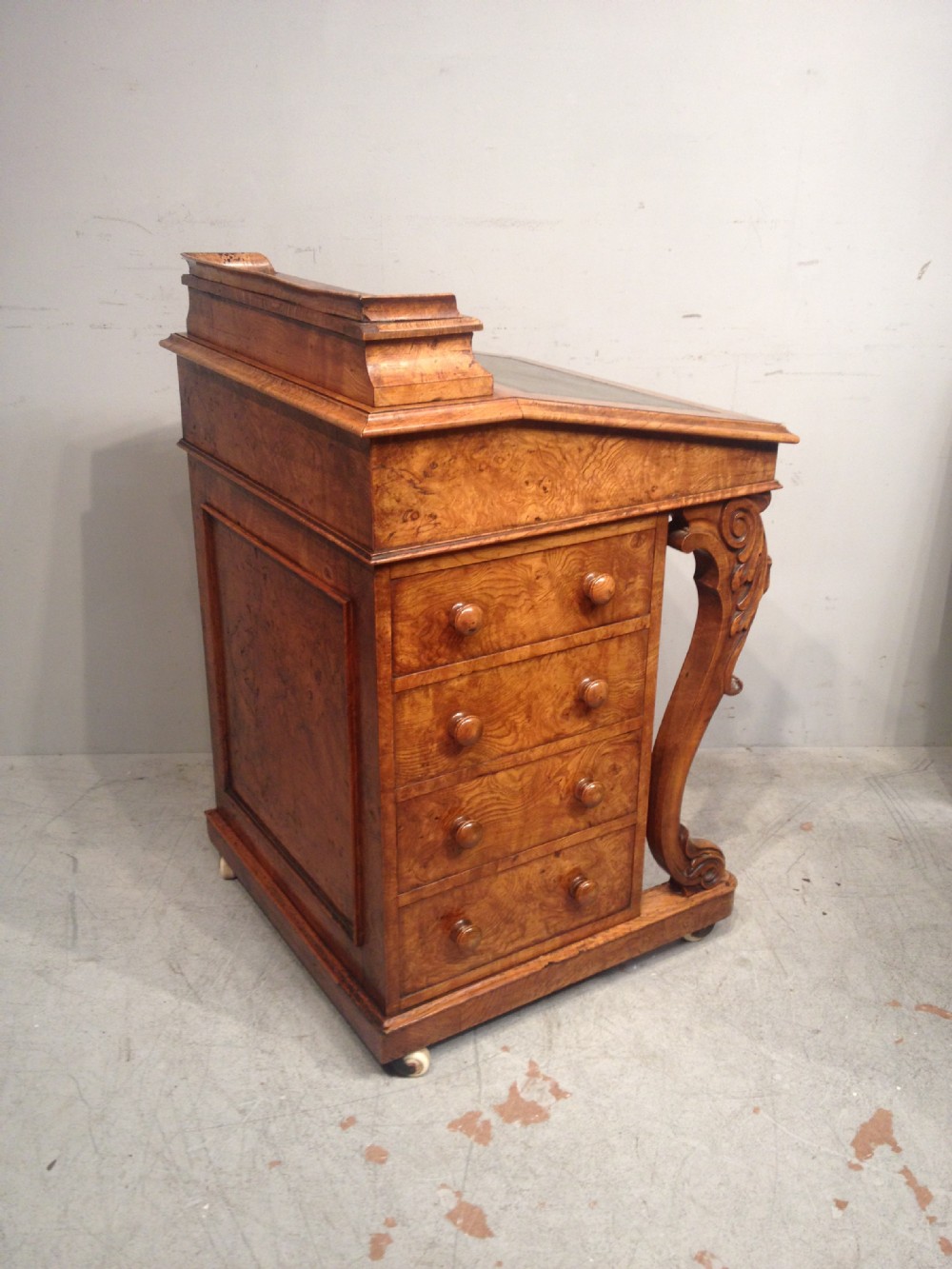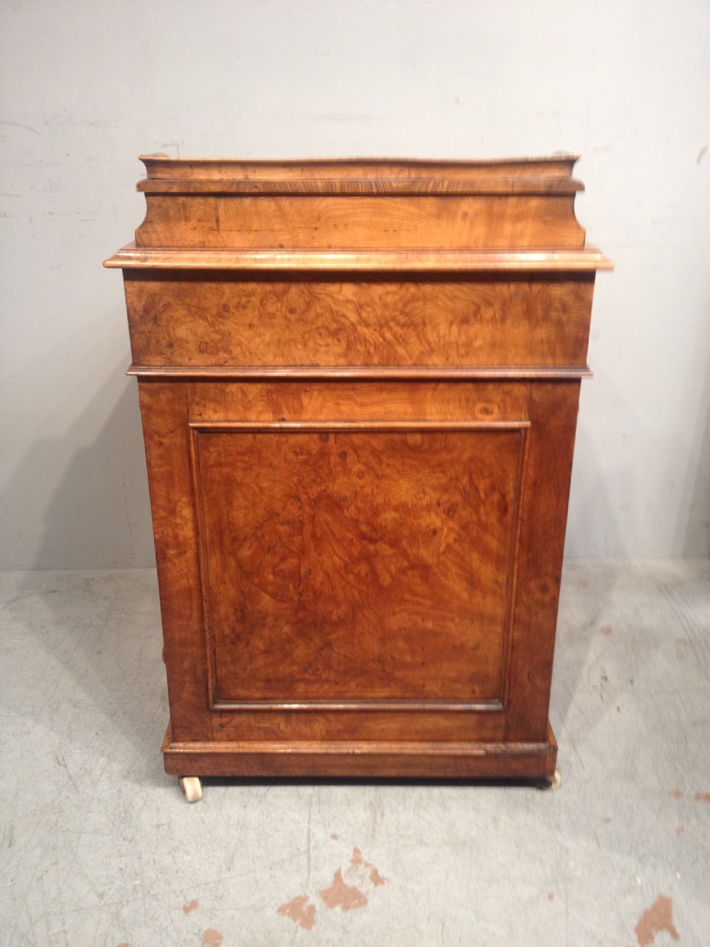 Antiker viktorianischer Davenport Sekretär aus Burr Elm / Ulmen Wurzelholz, englisch, ca 1850