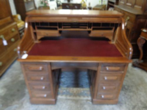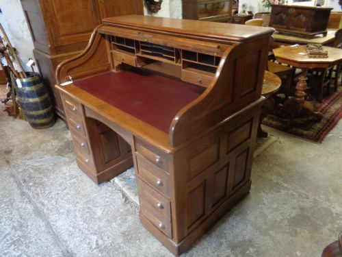 Britischer antiker Massivholz Sekretär Eiche Cylinder Desk