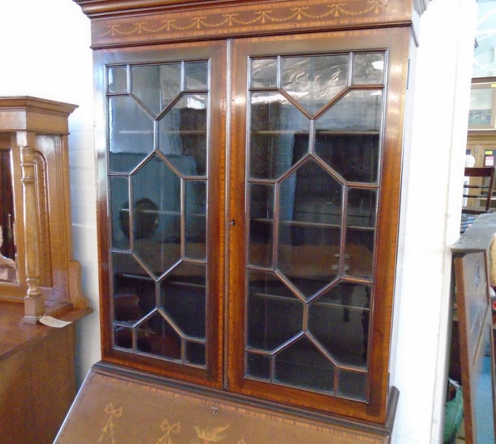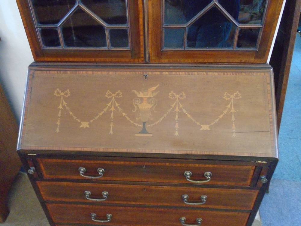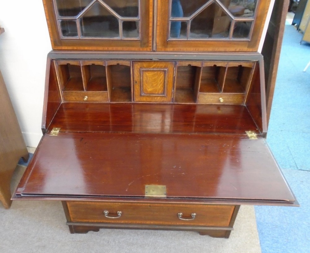 Edwardianischer antiker Mahagoni Bureau Bookcase Aufsatzsekretär ca 1890