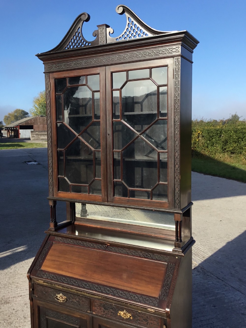Edwardianisches antikes Bureau Bookcase Mahagoni Aufsatzsekretär ca 1890