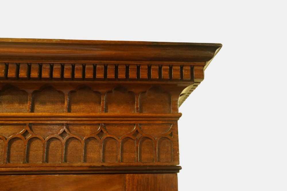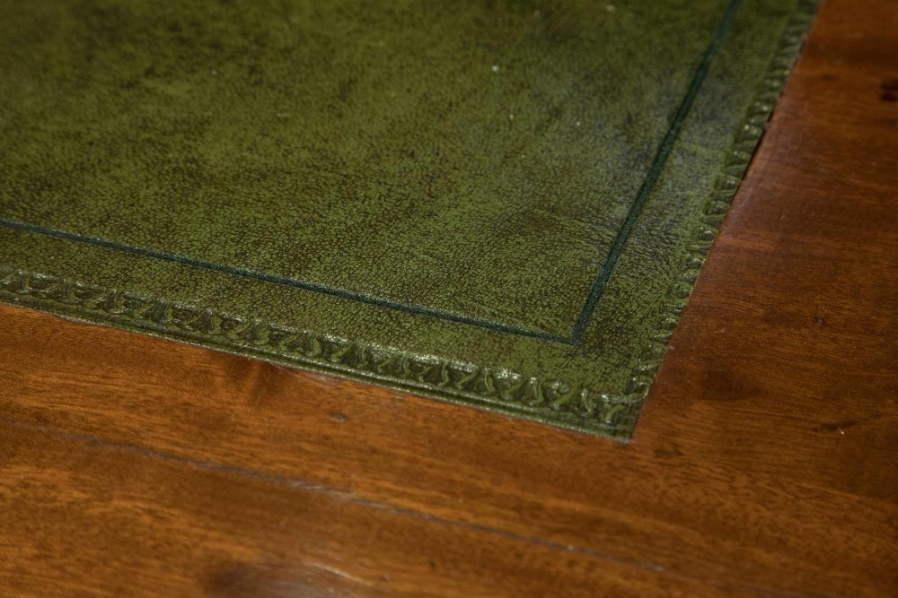 Original antike Leinen Presse großer Bücherschrank mit grüner Lederplatte und Schnitzereien