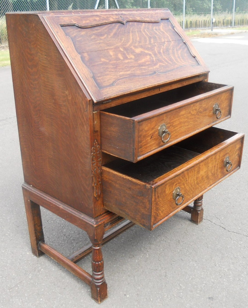 Original britischer Sekretär Massivholz Eiche antik England