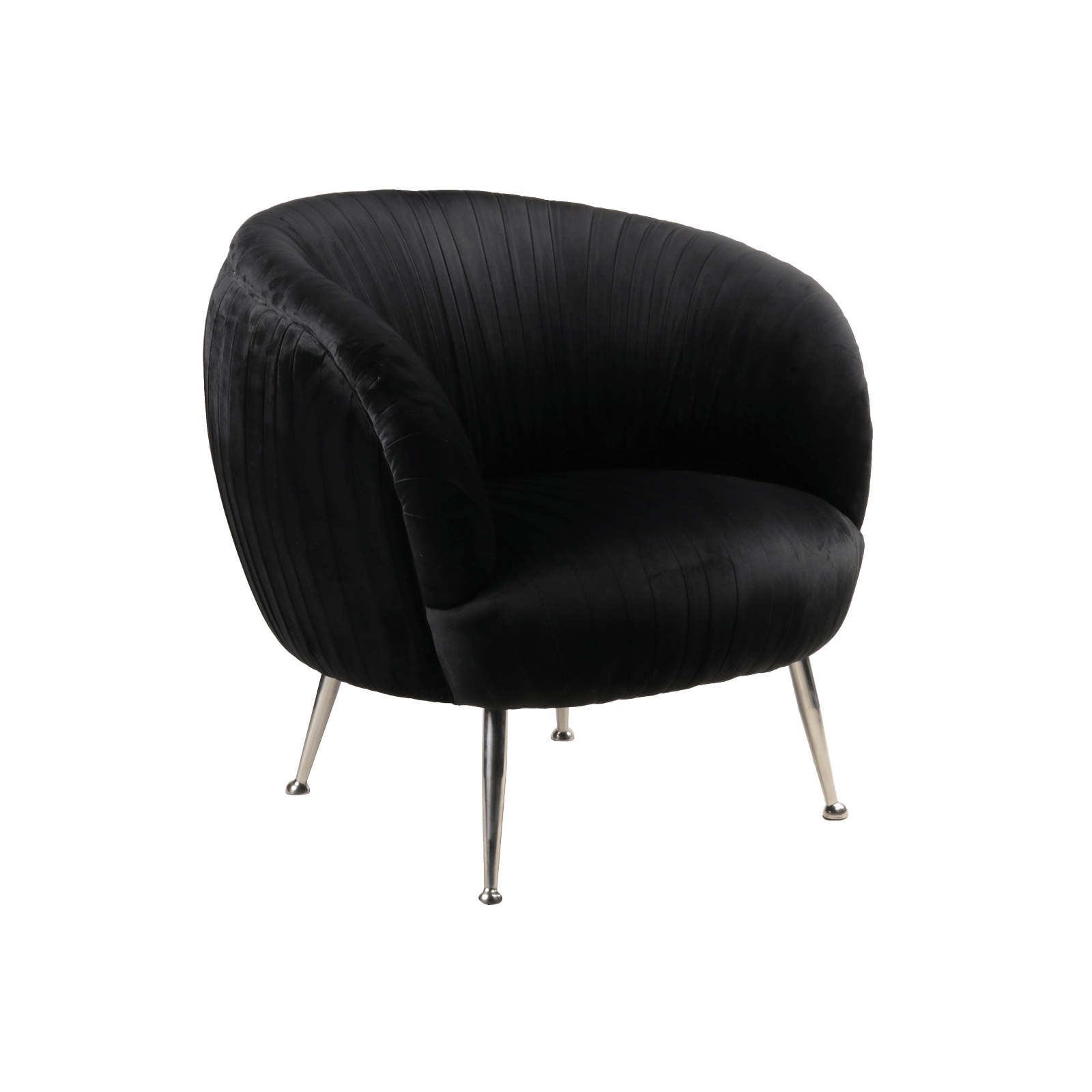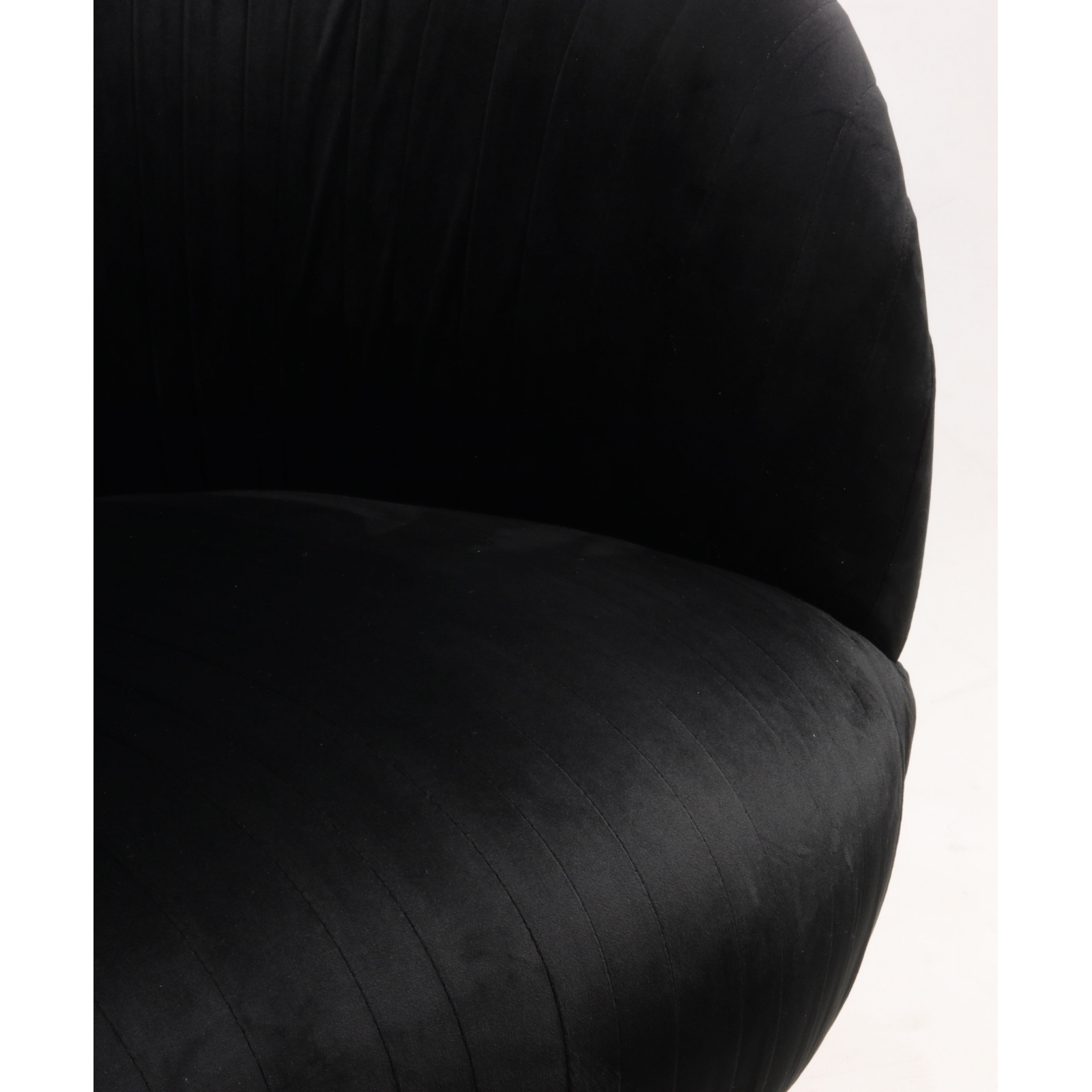 Mit Maßen von 79 x 75 x 75 cm wirkt dieser loungesessel schwarz präsent, ohne dominant zu erscheinen. Die Kombination aus tiefschwarzem Samt, runder Linienführung und schlankem Fußgestell macht ihn zu einem ausdrucksstarken Design-Element.