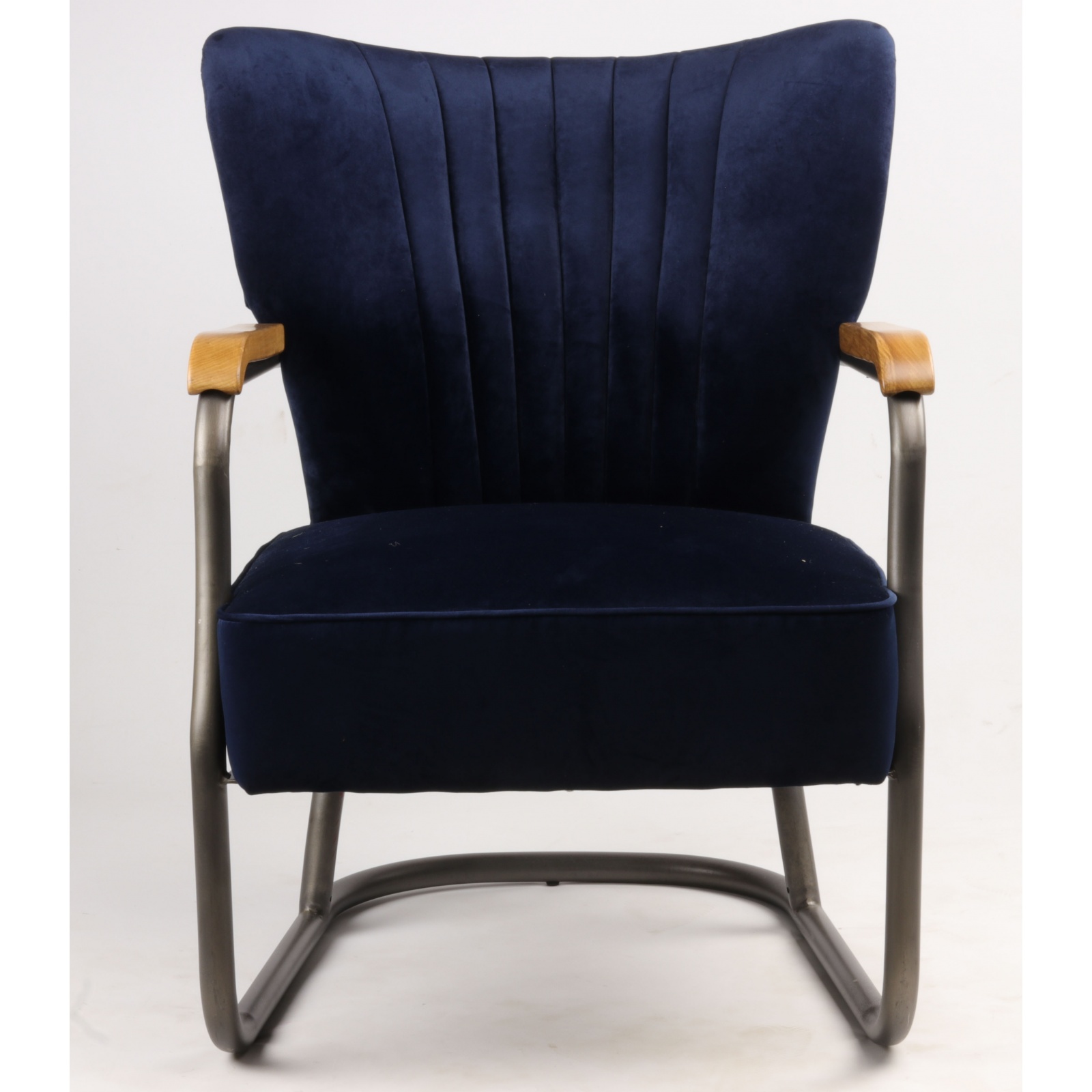 Freischwinger Sessel Blau im Bauhaus Stil – Samtsessel mit Metallgestell