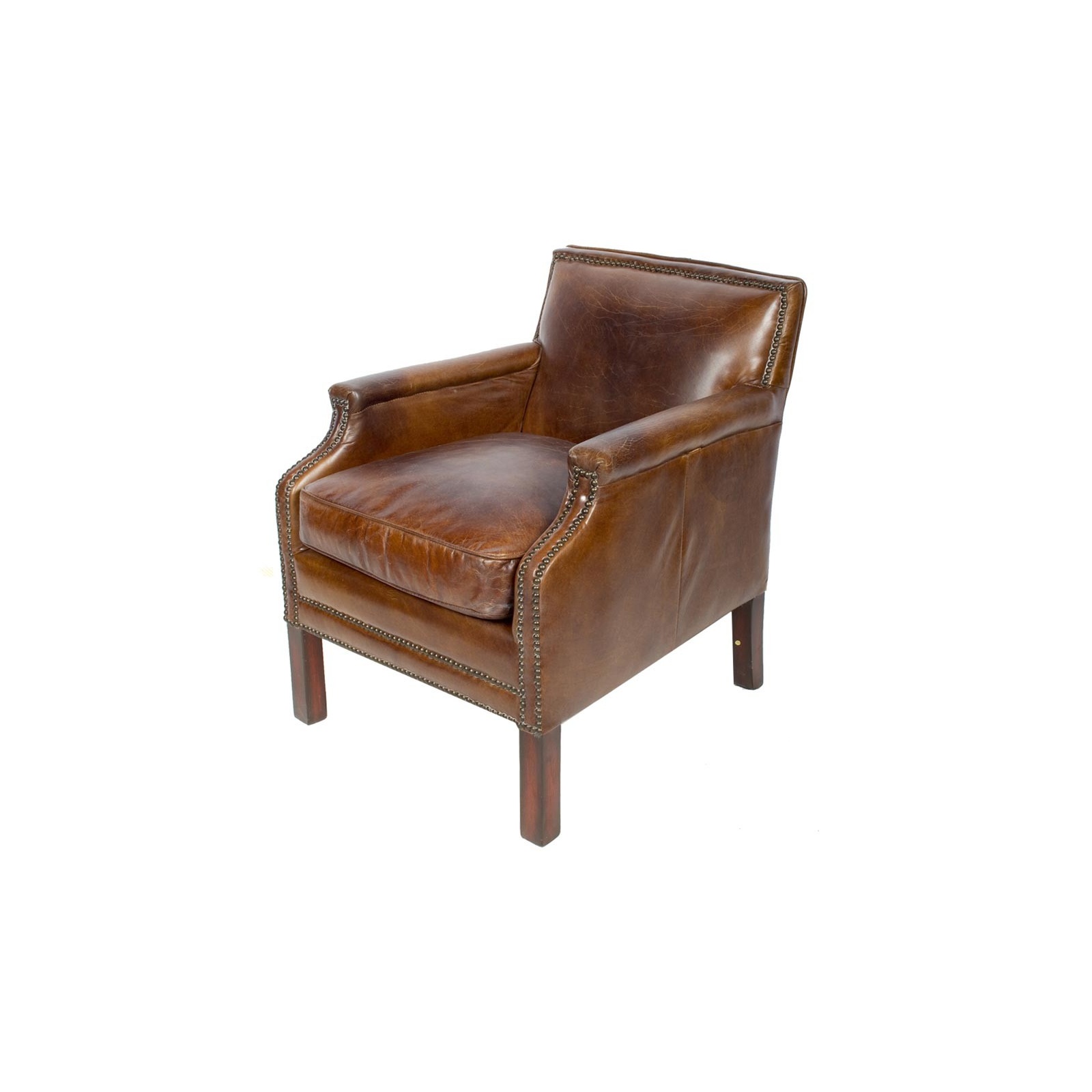Ledersessel "Winston Flat" in Vintage Cigar – französischer Clubsessel aus Echtleder
