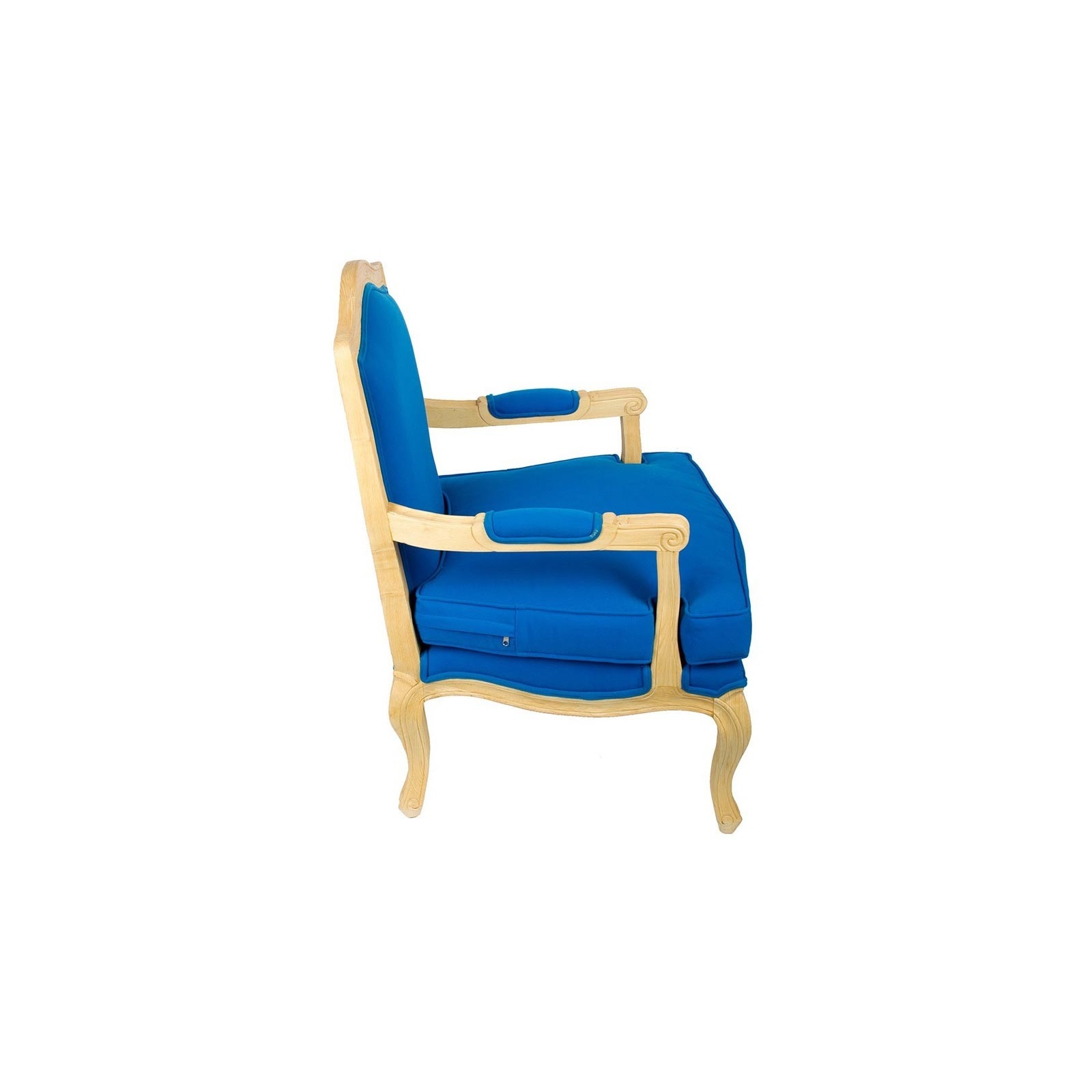 Französischer Sessel "LXV" im Louis XV Stil in Blau mit Massivholz
