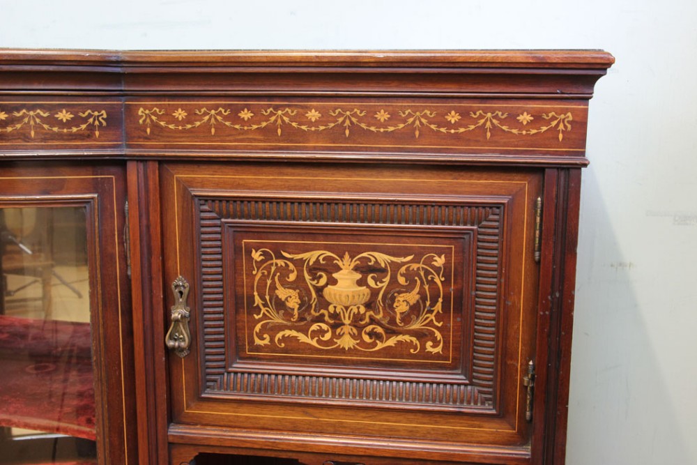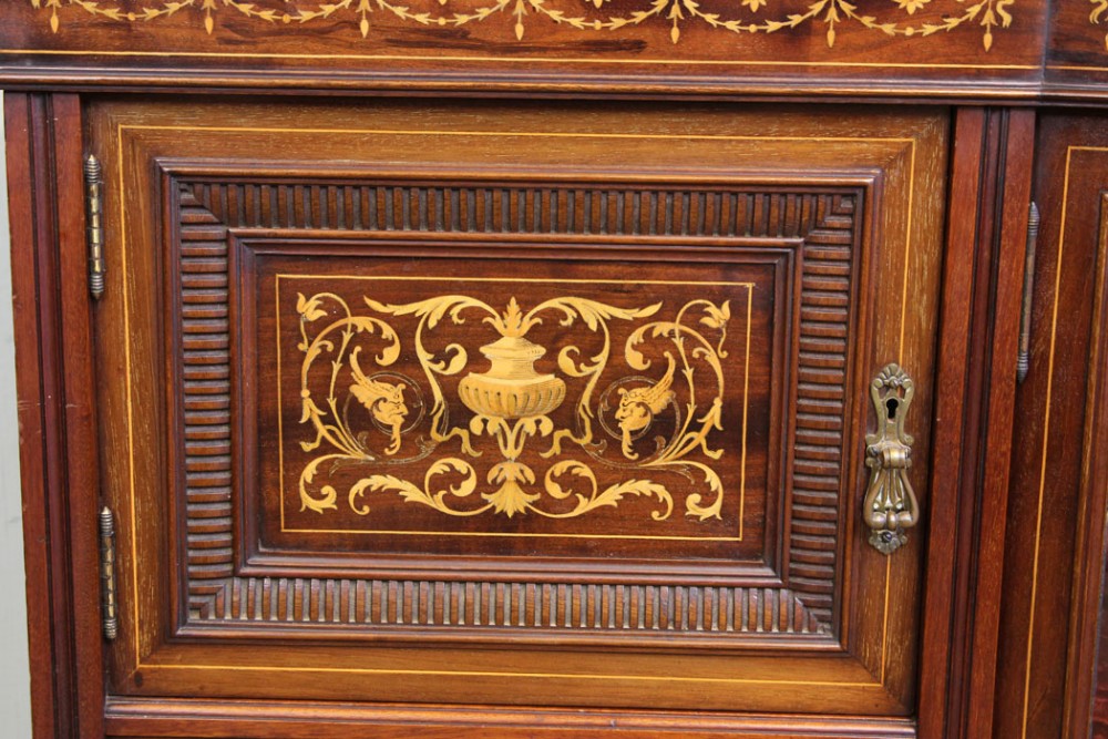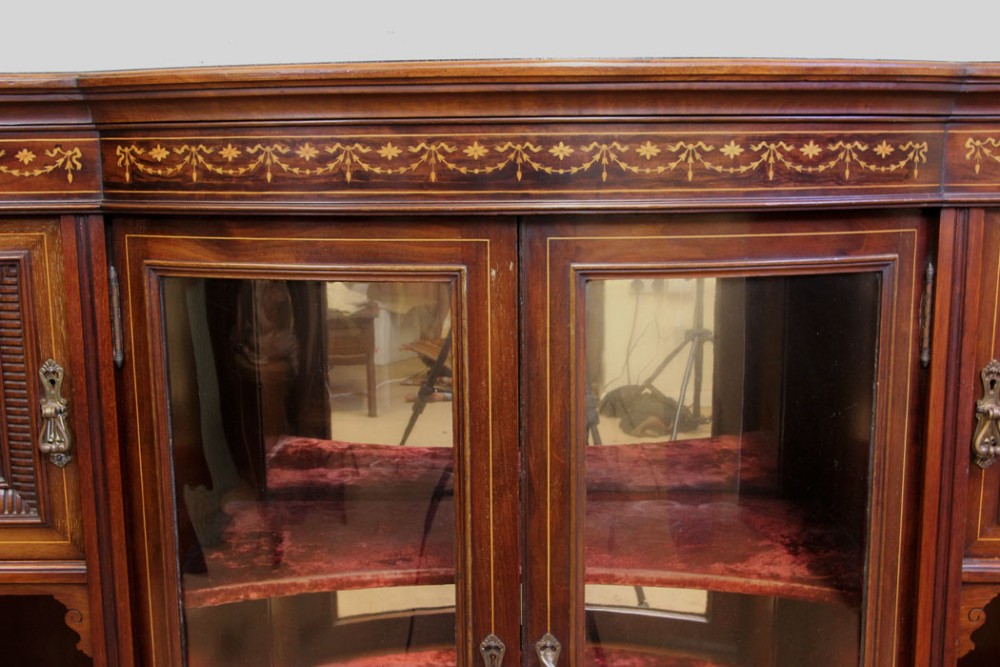 Antikes Mahagonibogen-Sideboard mit Intarsien