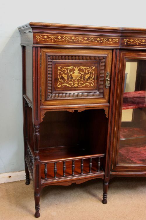 Antikes Bogen-Sideboard Mahagoni Massivholz mit Intarsien 1900