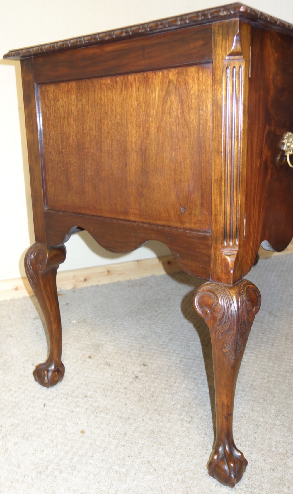 Dieses Sideboard hat vertäfelte Seiten und tolle Löwen-Ringgriffe.