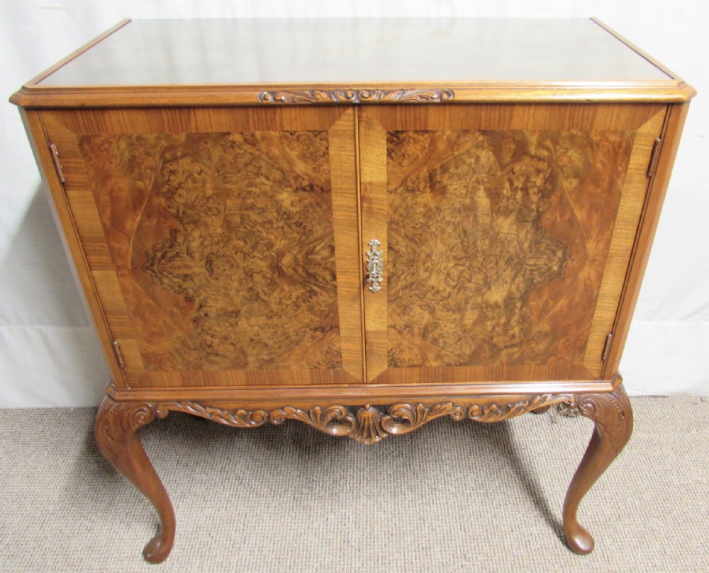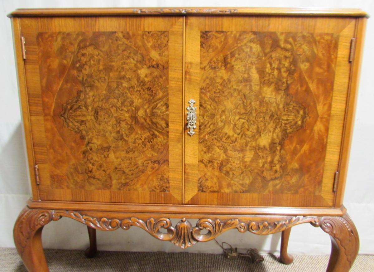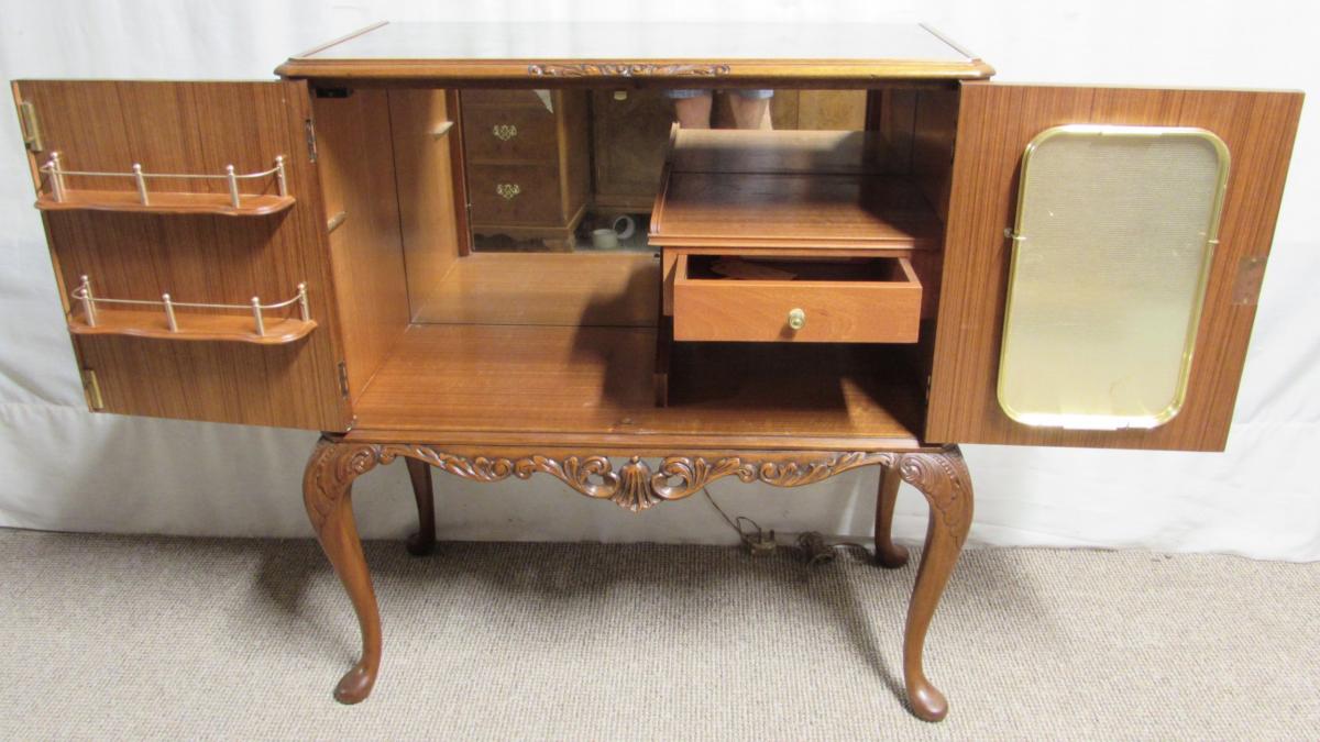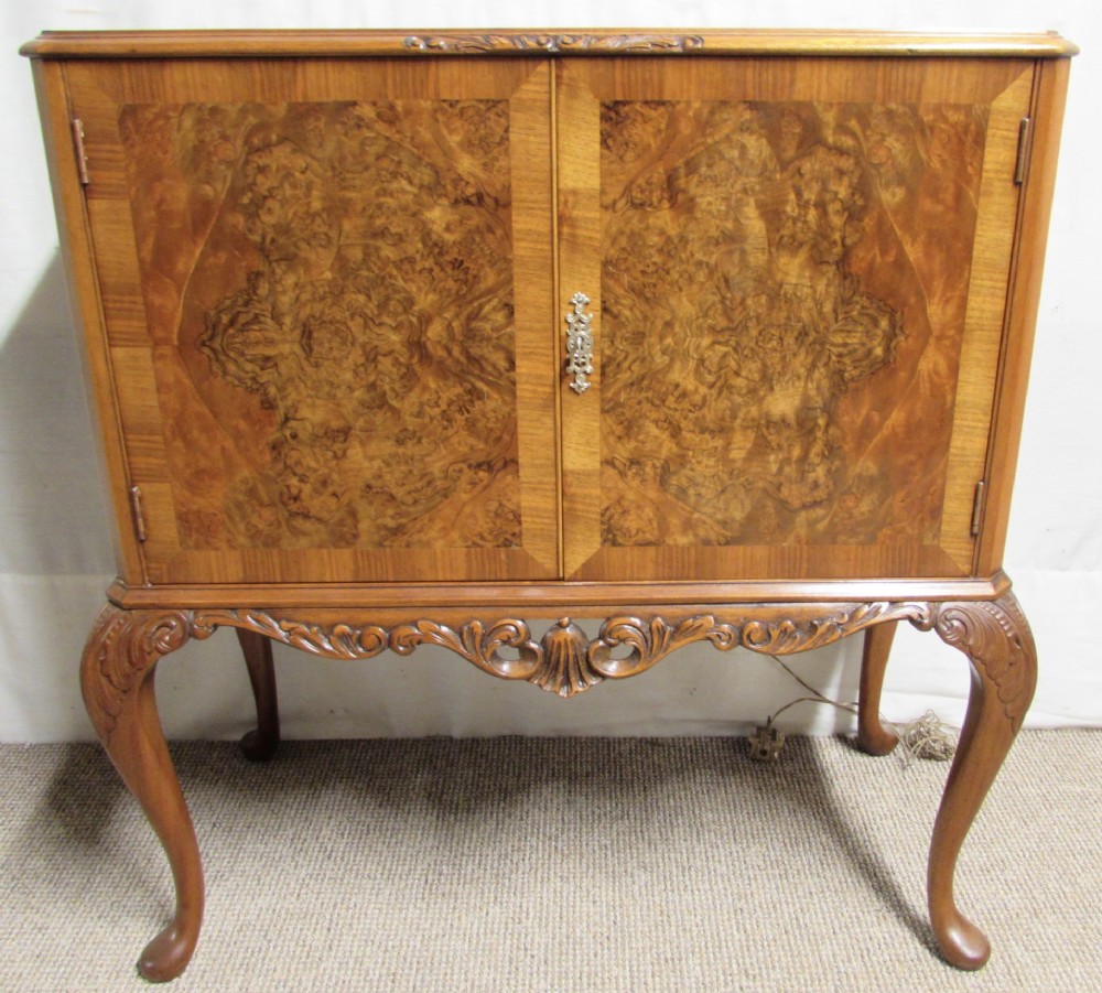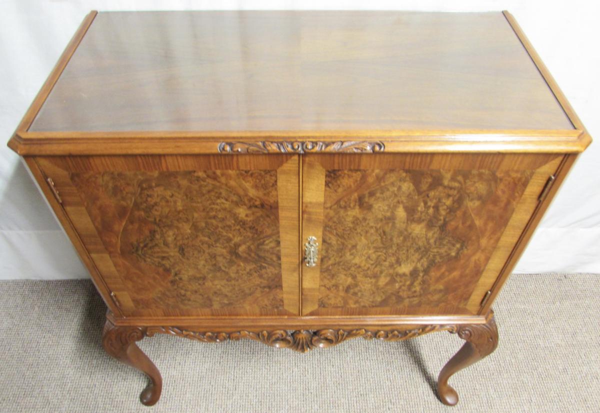 Original britisches Massivholz Nussbaum Sideboard Cocktailschrank antik