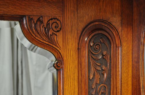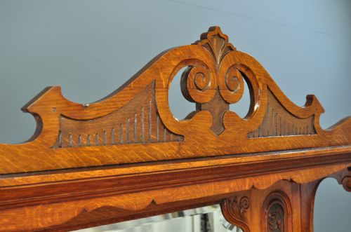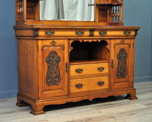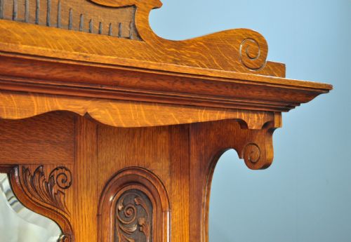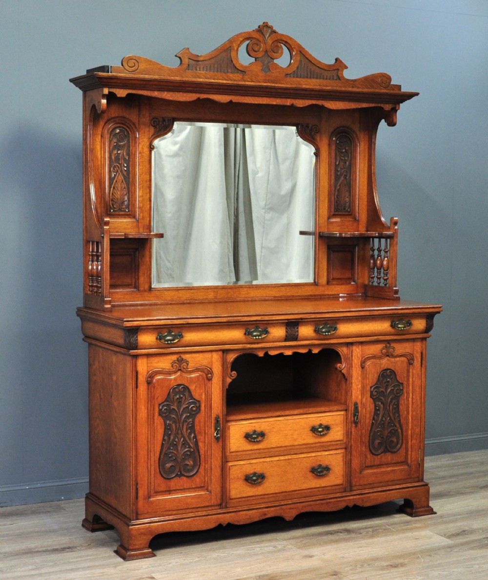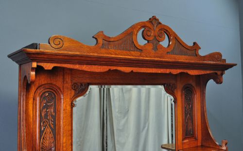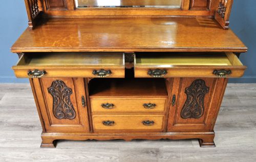 großes antikes viktorianisches stark geschnitztes Spiegel-Sideboard aus Eichenholz