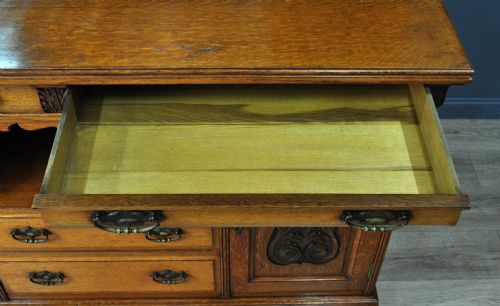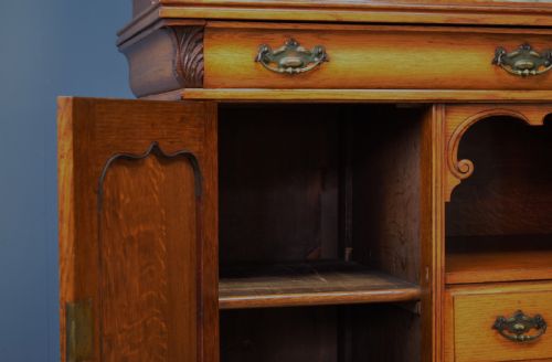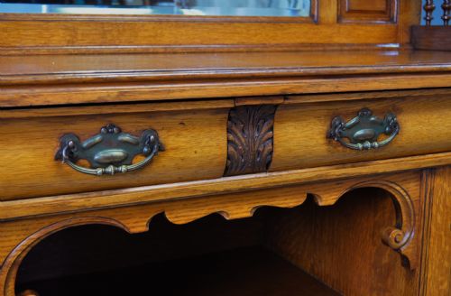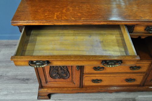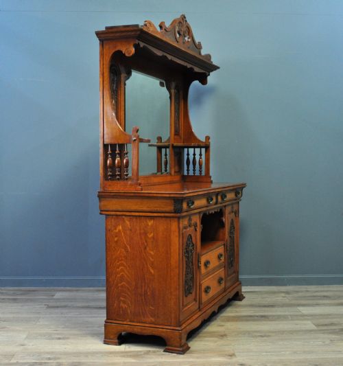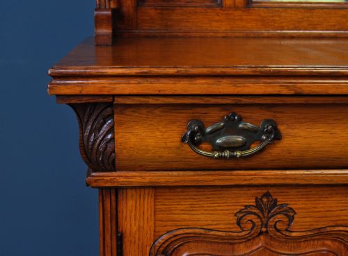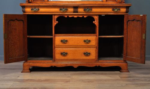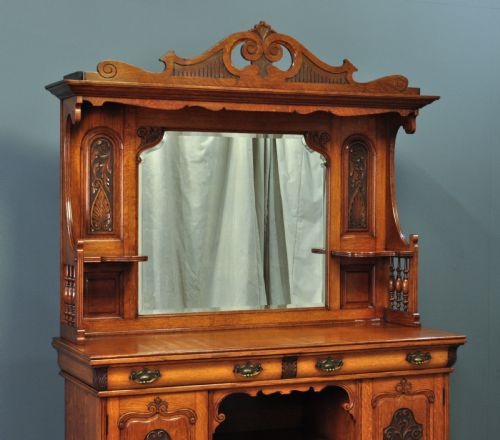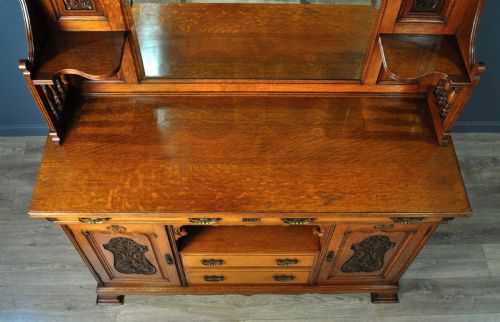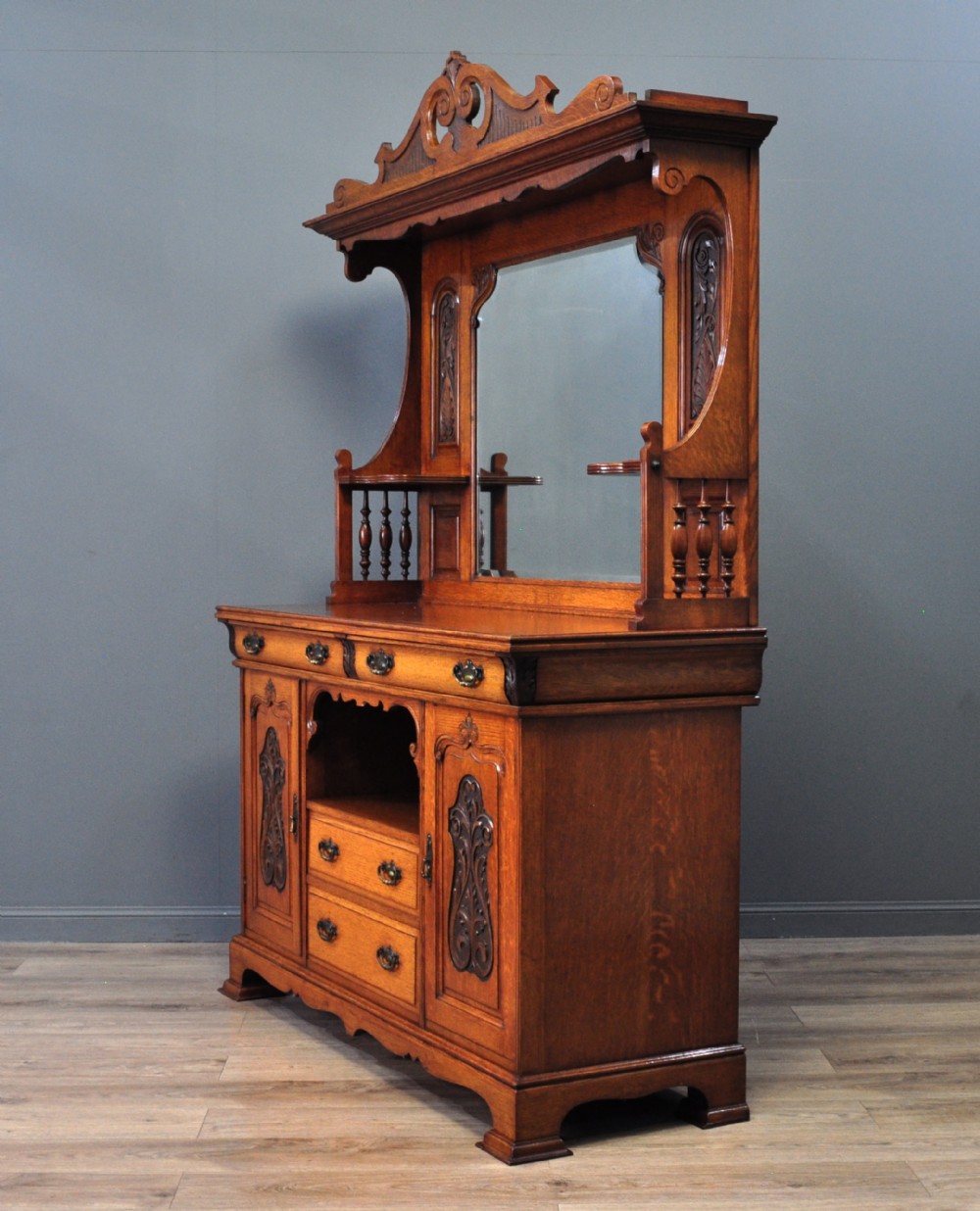 Ein schönes viktorianisch geschnitztes Sideboard mit Spiegelrückseite aus Eichenholz. Wir datieren dieses Sideboard in die zweite Hälfte des 19. Jahrhunderts.