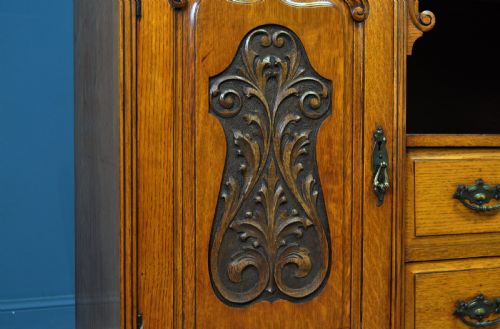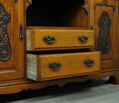 großes antikes stark geschnitztes Spiegel-Sideboard aus massivem Eichenholz viktorianischer Stil