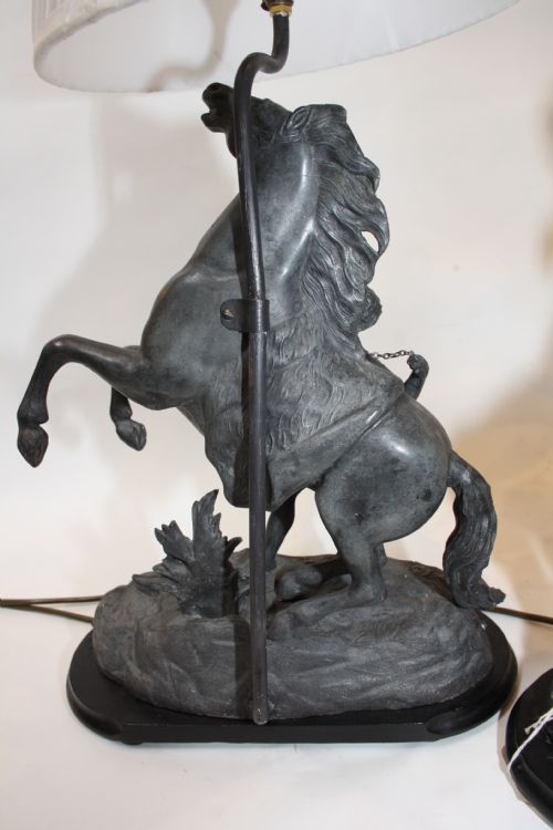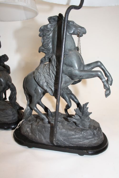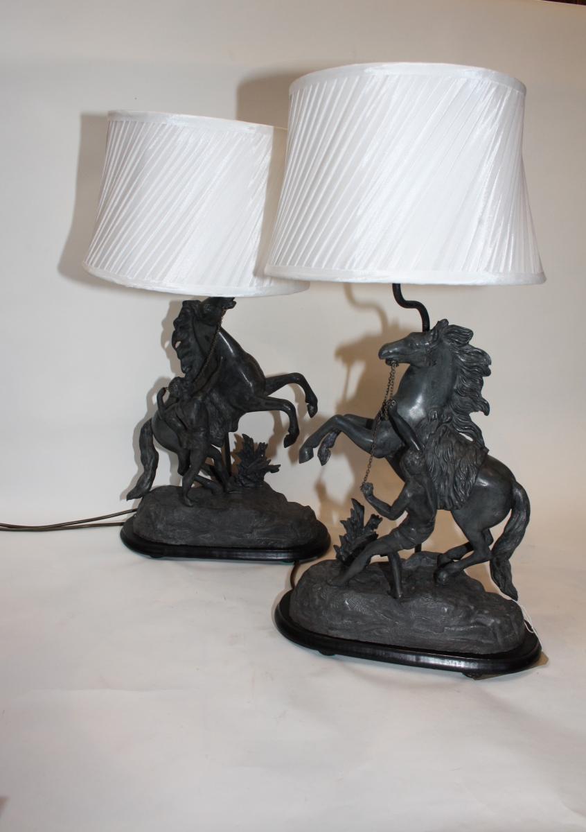 Paar aus Spelter-Marley-Pferden auf ebonisierter Basis stehend .spätes 19. Jahrhundert .Diese wurden ursprünglich von Guillaurne Couslou gemeißelt.