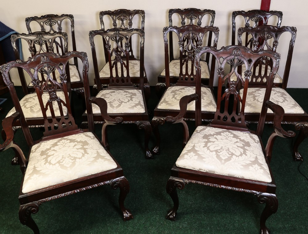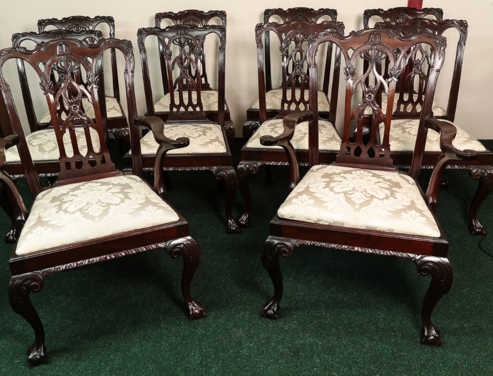 10 Stk original antike viktorianische Mahagoni Stühle Chippendale Style 1860