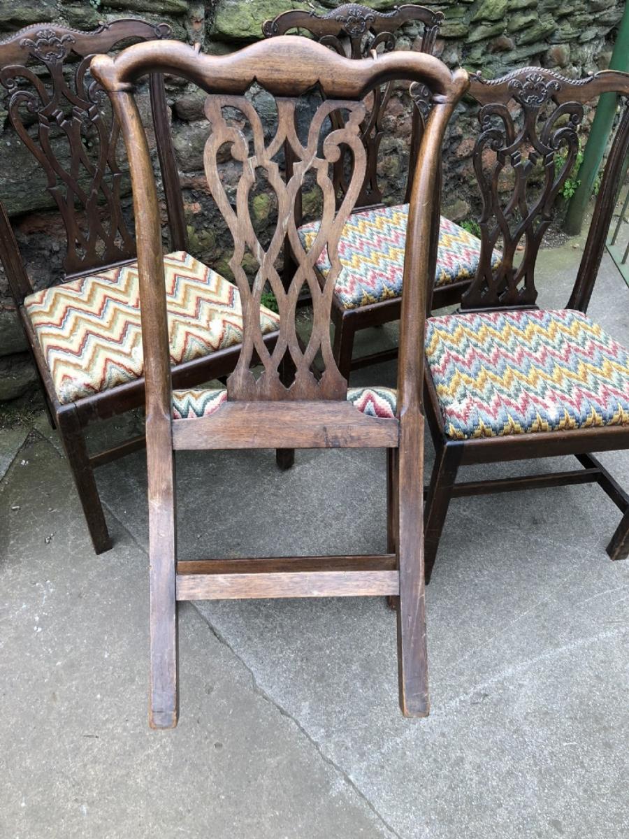 4 George III. Antike Englische Mahagoni Stühle im Chippendale Stil ca. 18. JH.