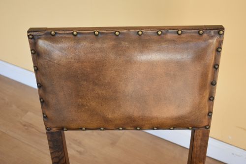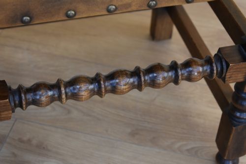 Original britische antike Küchenstühle Massivholz Eiche Leder Cromwell Stil