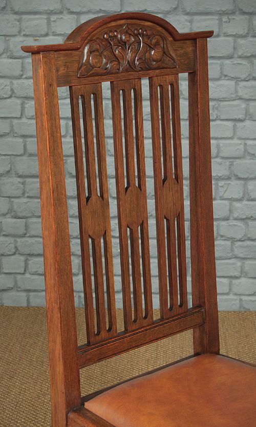 8 Stk original englische Arts & Crafts Esszimmerstühle Eiche antik ca 1910
