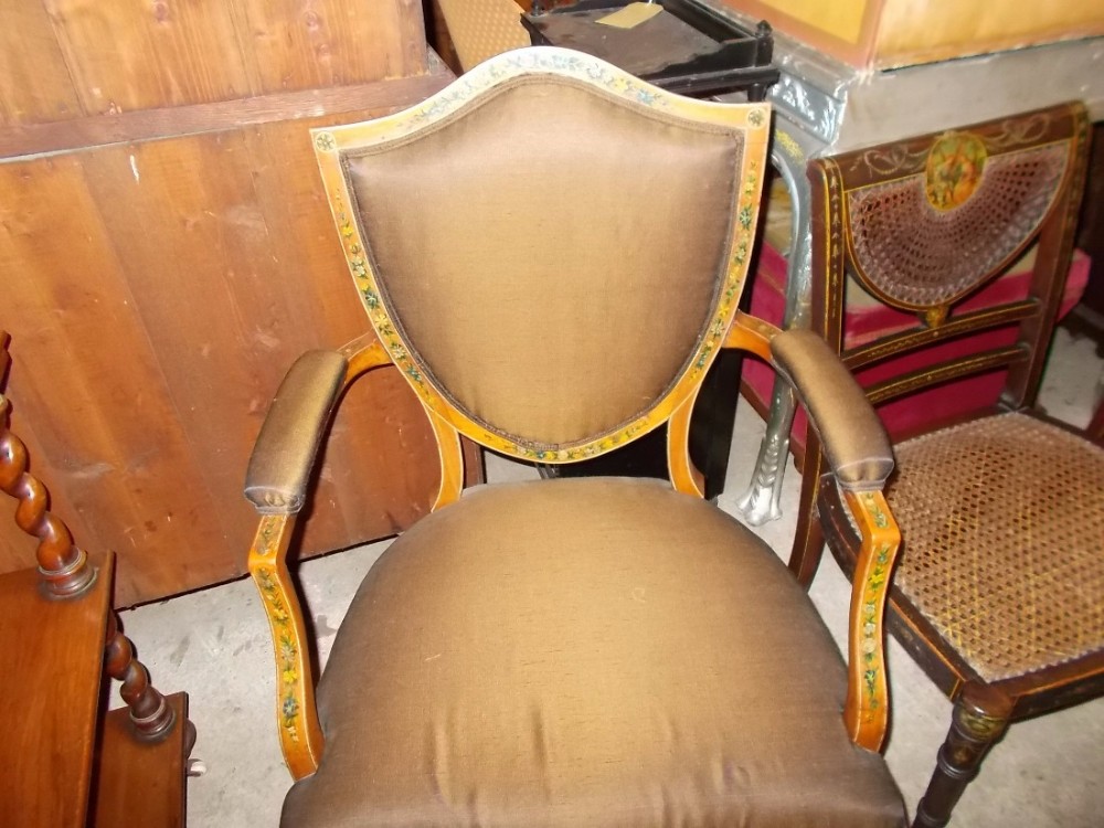 Antiker Massivholz Stuhl Sessel Stoff englisch ca 1900