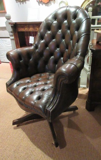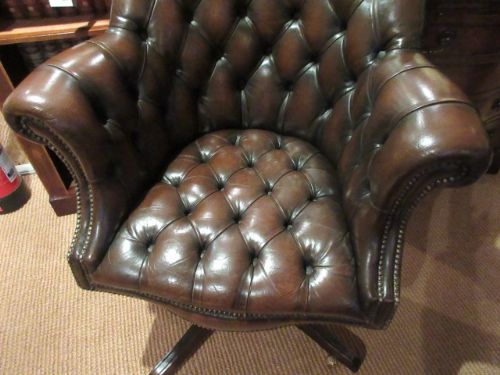 Englischer Mahagoni Drehstuhl Schreibtisch Sessel Chesterfield antik