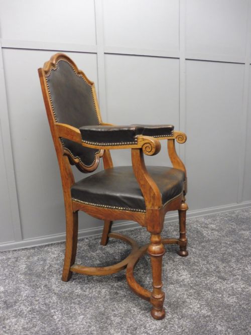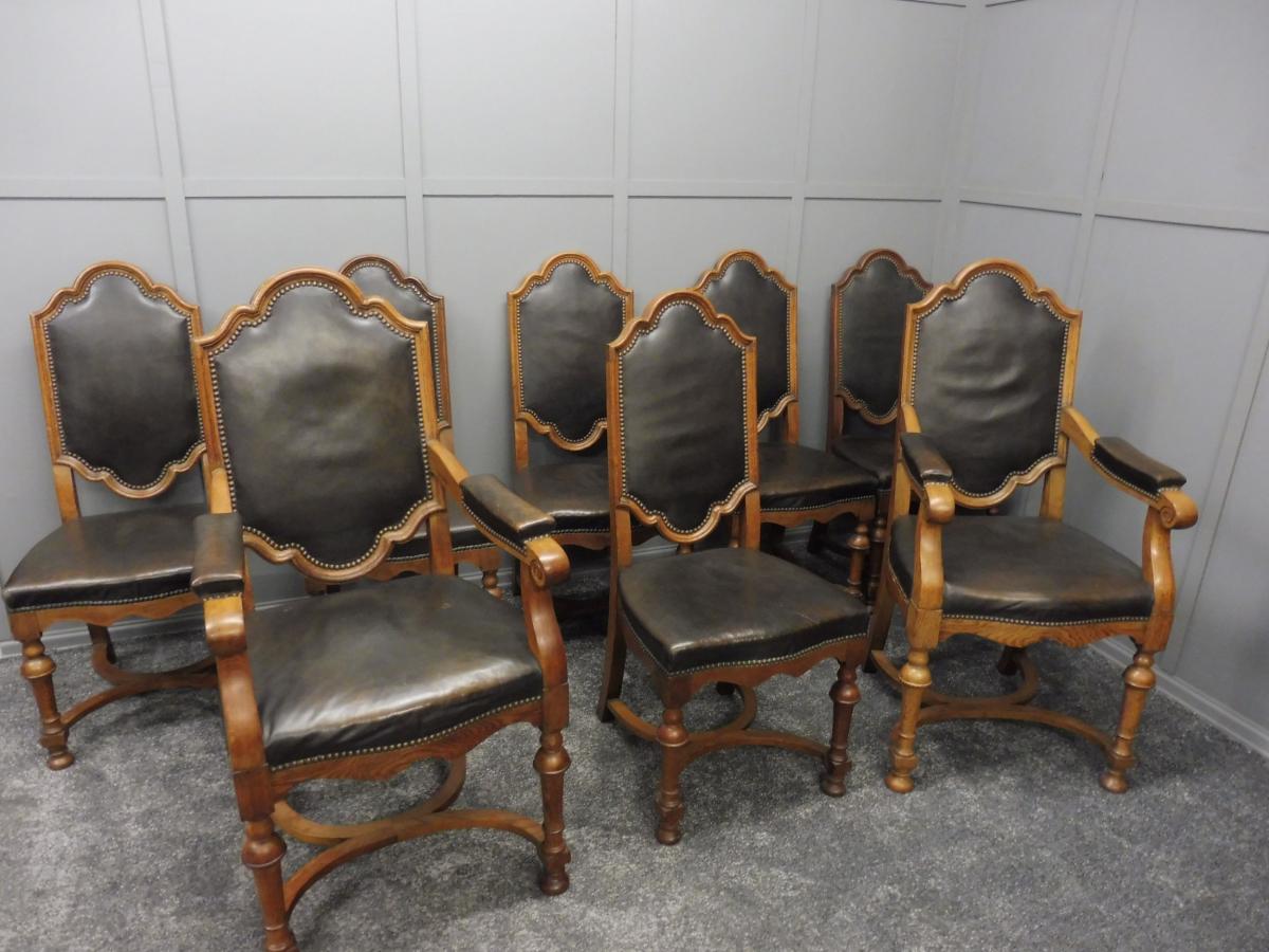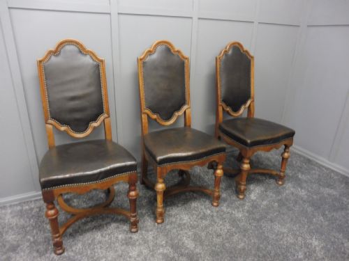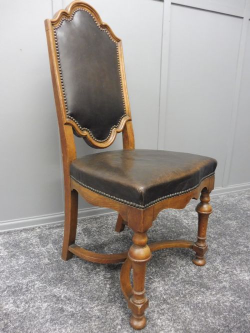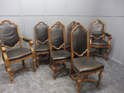 Edwardianische antike Eichen Esszimmerstühle Echtleder englisch ca 1910