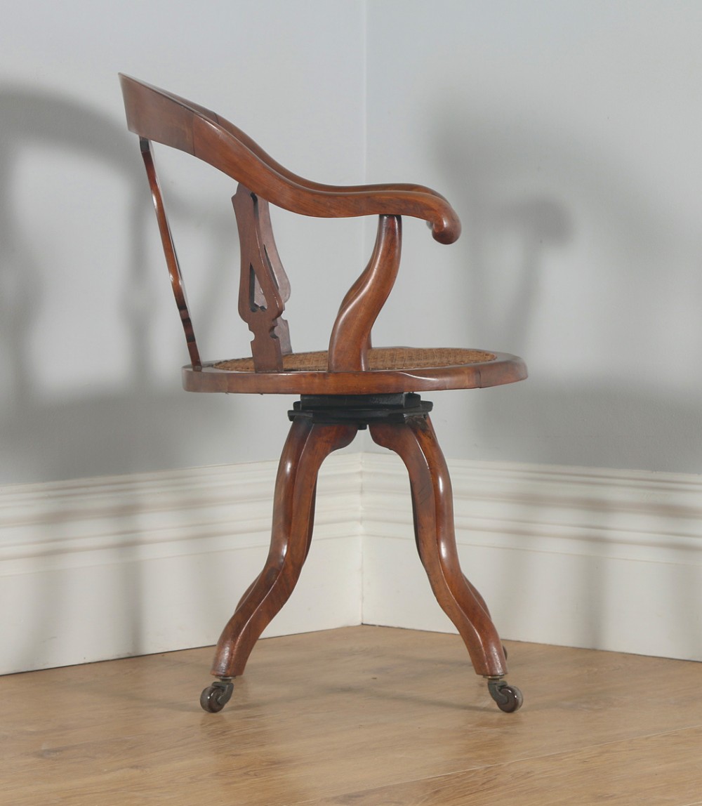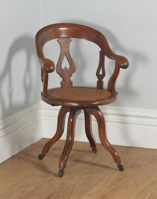 Britischer antiker Massivholz Bürostuhl Mahagoni Drehstuhl