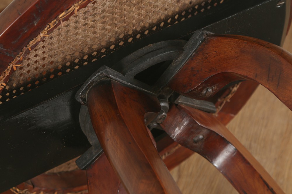 Er ist in gutem Originalzustand, verfügt über Messing- und braune Tassenrollen, die sich in gutem Zustand befinden, und wurde gewachst und poliert.