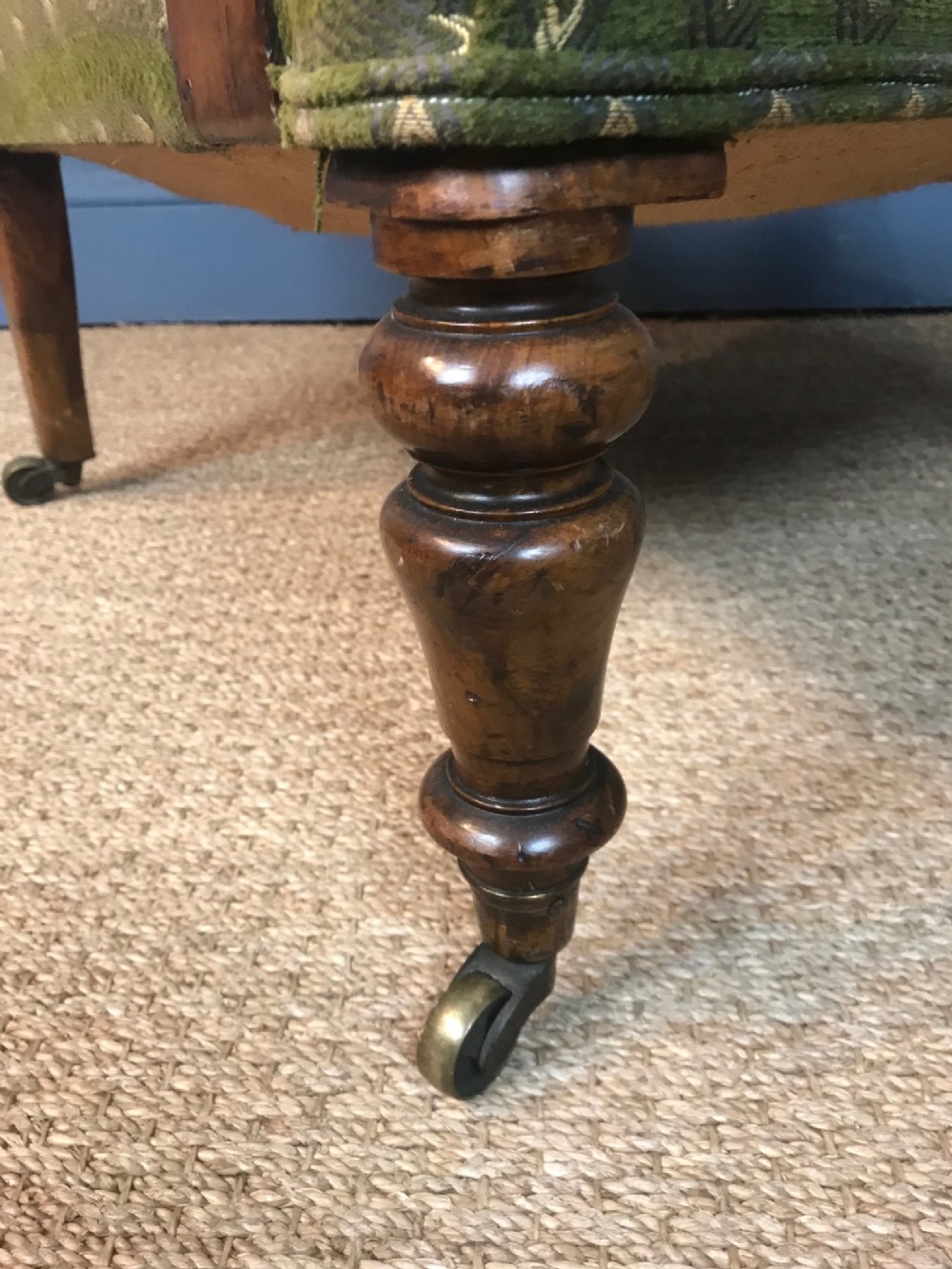 Antiker britischer Massivholz Stoffsessel Nussbaum