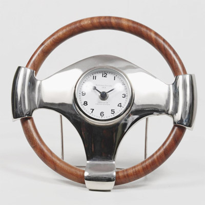 Tisch Uhr Lenker Retro 26x5x26 aus Nickel/Holz im Nickel Finish