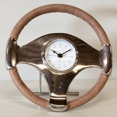 Tisch Uhr Lenkung 26x15x22 aus Nickel/Leder in Silber
