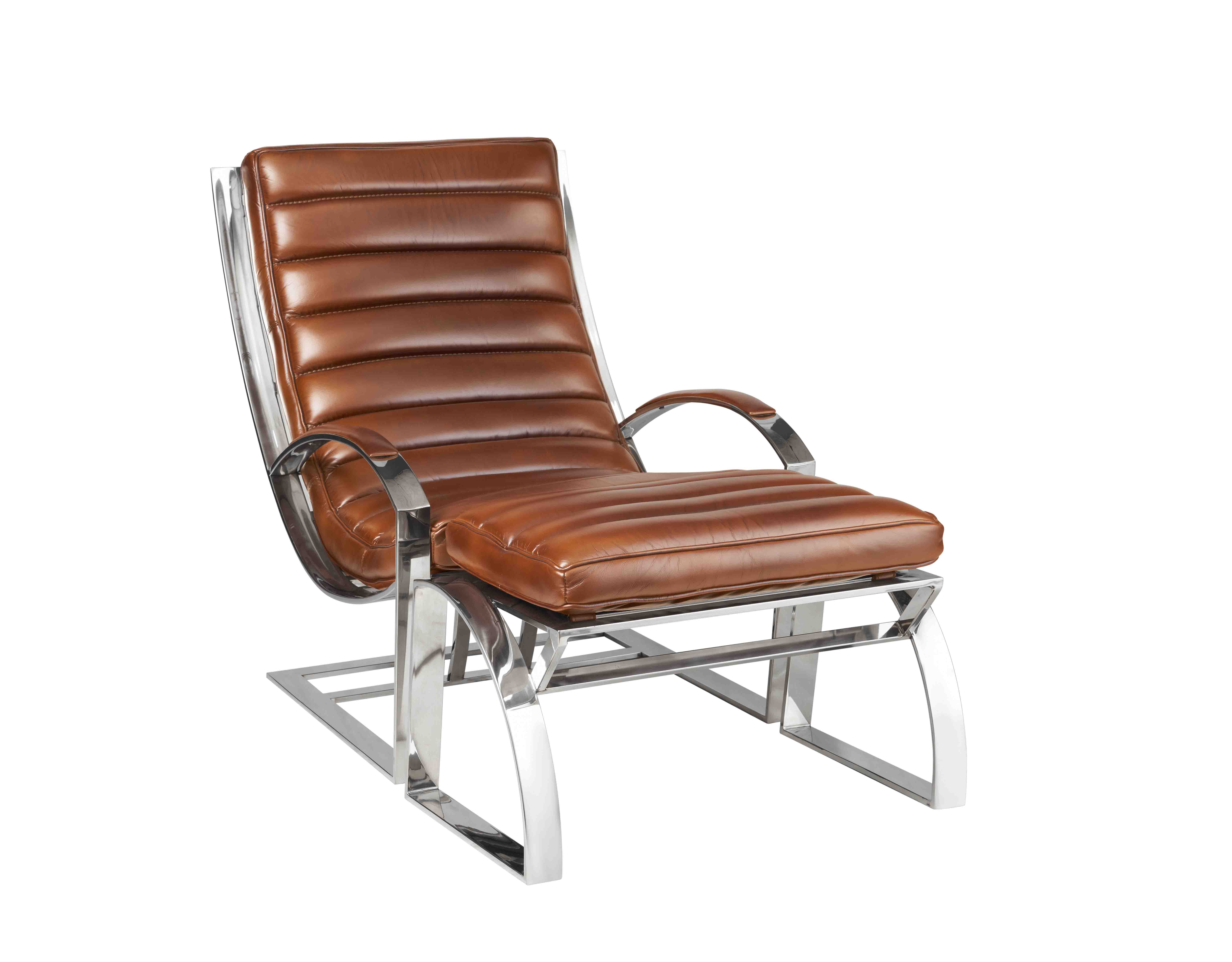 Freischwinger Sessel Leder Braun mit polierter Edelstahlstruktur