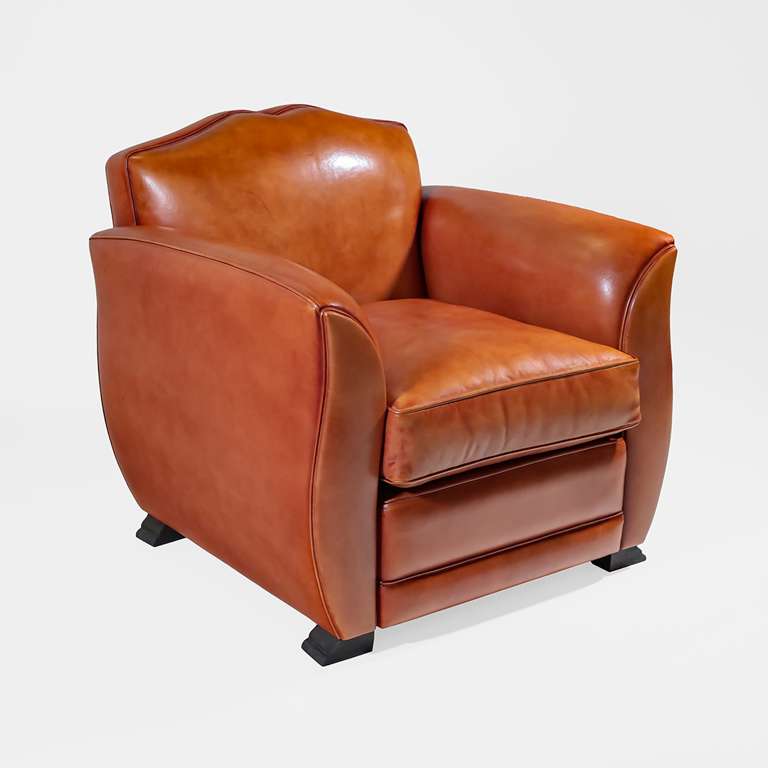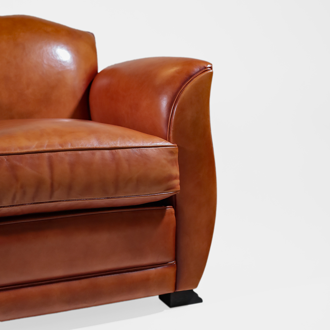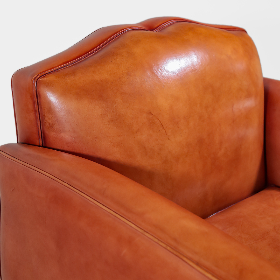 Massivholzmöbel original Art Deco Stil Ledersessel vollnarbiges Schafsleder handpatiniert handpoliert Vintage Stil
