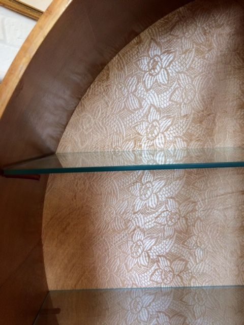 Englische antike Art Deco Vitrine Nussbaum Ahorn Massivholz