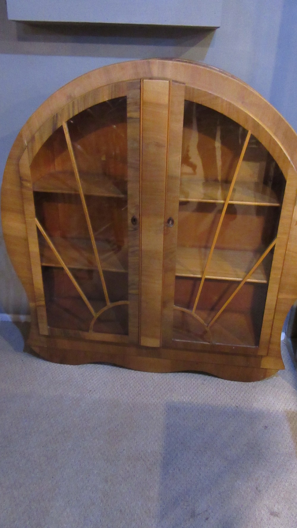 Antike Vitrine aus Nussbaumholz im Art-Deco-Stil
