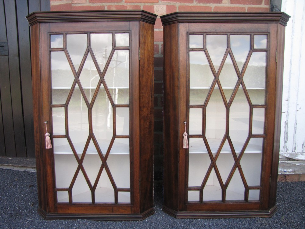 Antikes Paar viktorianische massive Mahagoni Eckschränke Hängeschränke Vitrinen 1900