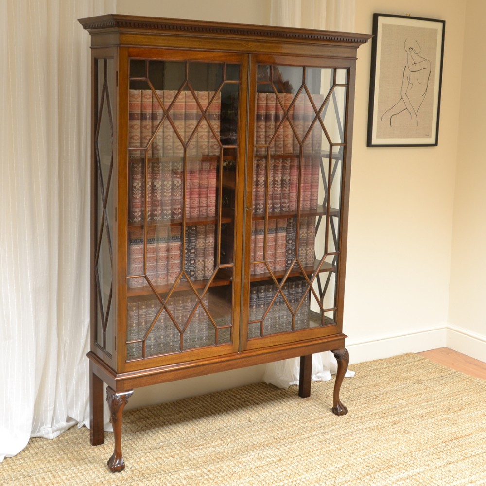 Antike englische Massivholz Vitrine Mahagoni Bücherschrank