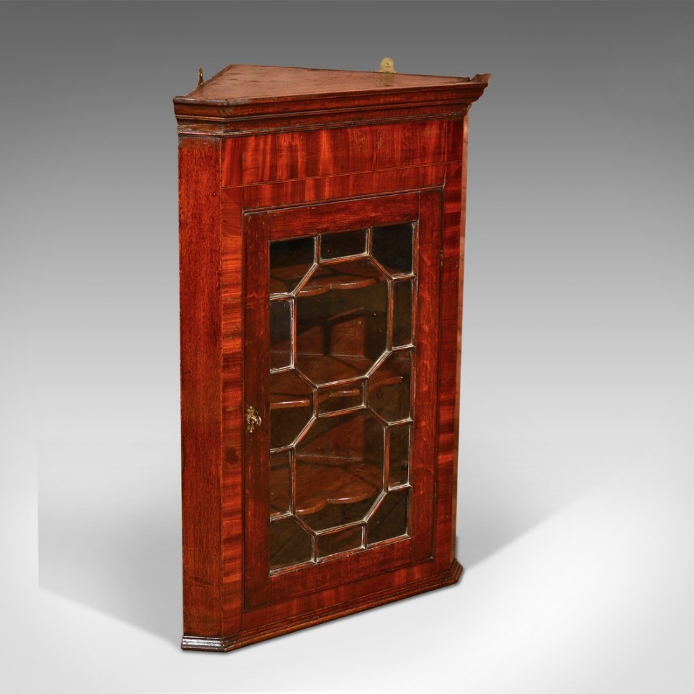 Original britische Massivholz Vitrine Eiche Eckschrank original antik