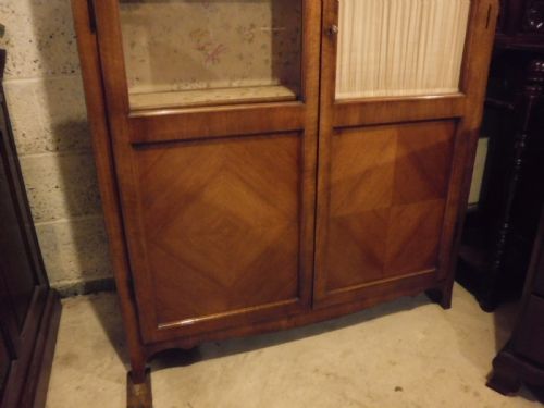 Original englische Nussbaum Massivholz Vitrine antik