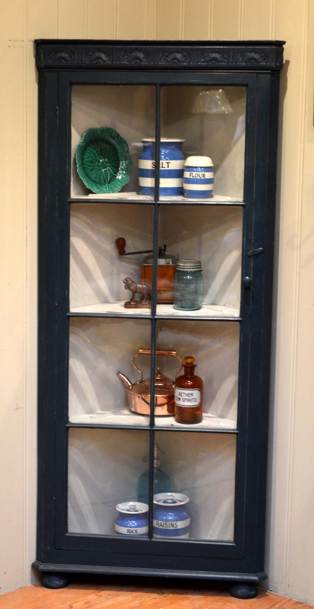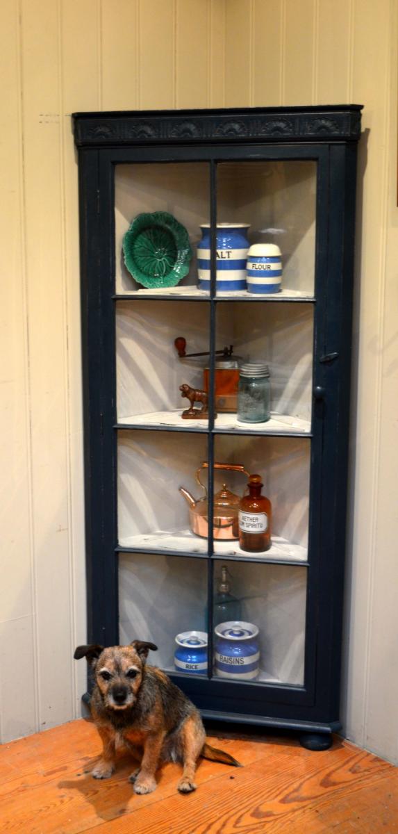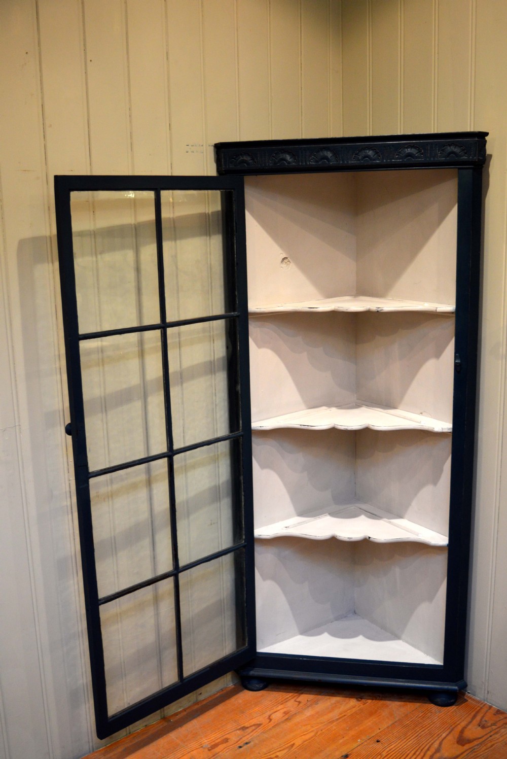 Original britische antike Vitrine Massivholz Eckschrank lackiert