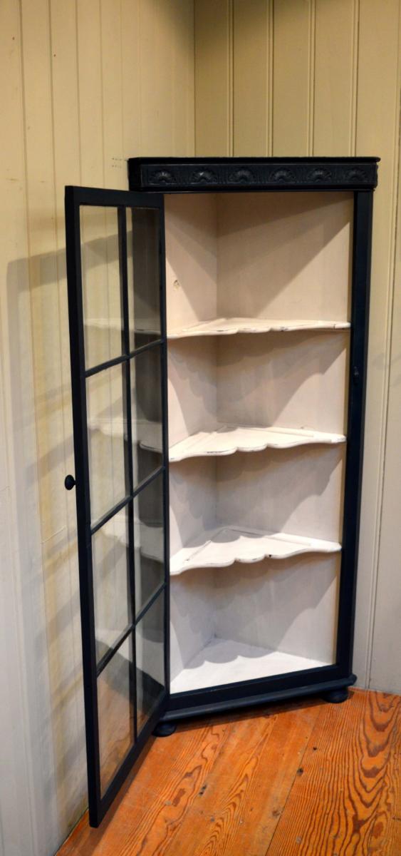 Original englische Vitrine antike Eckvitrine schwarz lackiert 1920