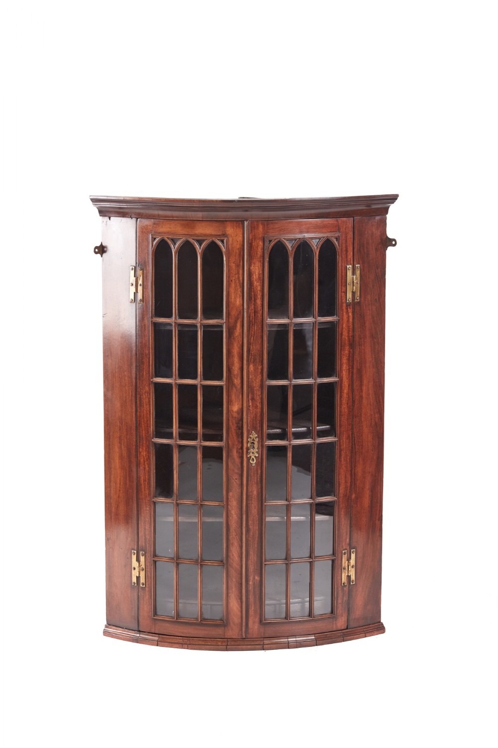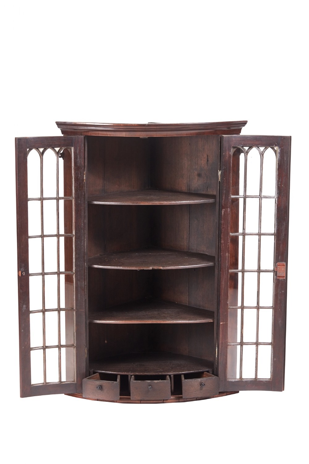 Original antike britische Massivholz Nussbaum Eckvitrine Eckschrank Hängeschrank
