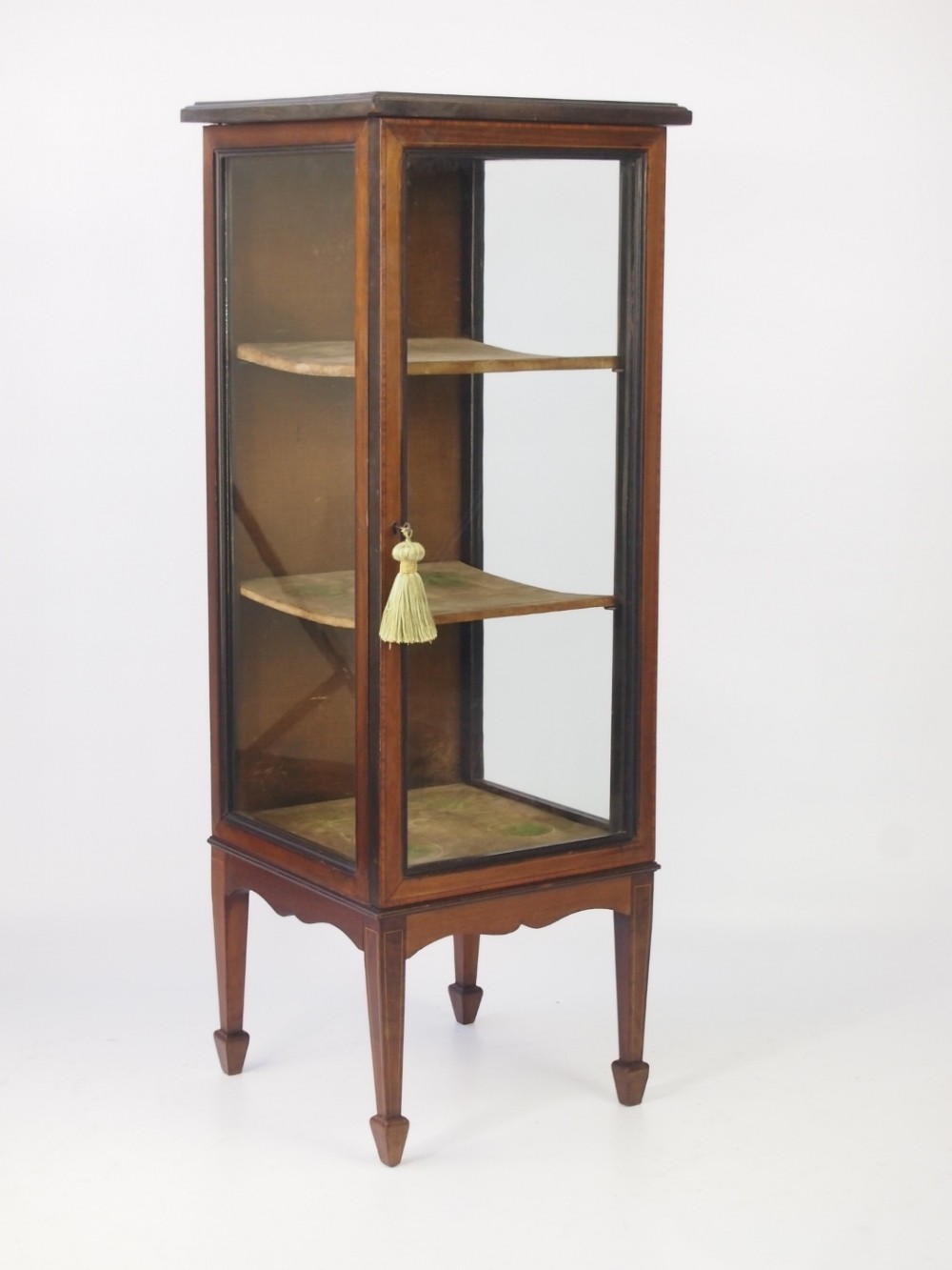 Schmale edwardianische Mahagoni Vitrine massiv original antik 1890