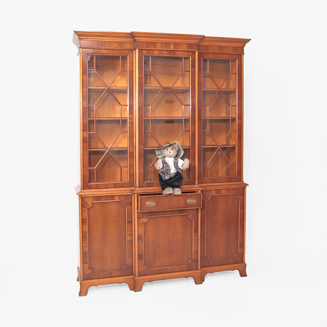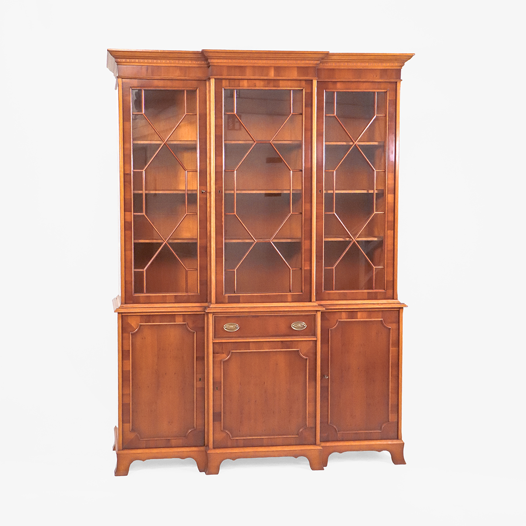 Englischer Vitrinenschrank Breakfront aus Eibe mit Verglasung und viel Stauraum