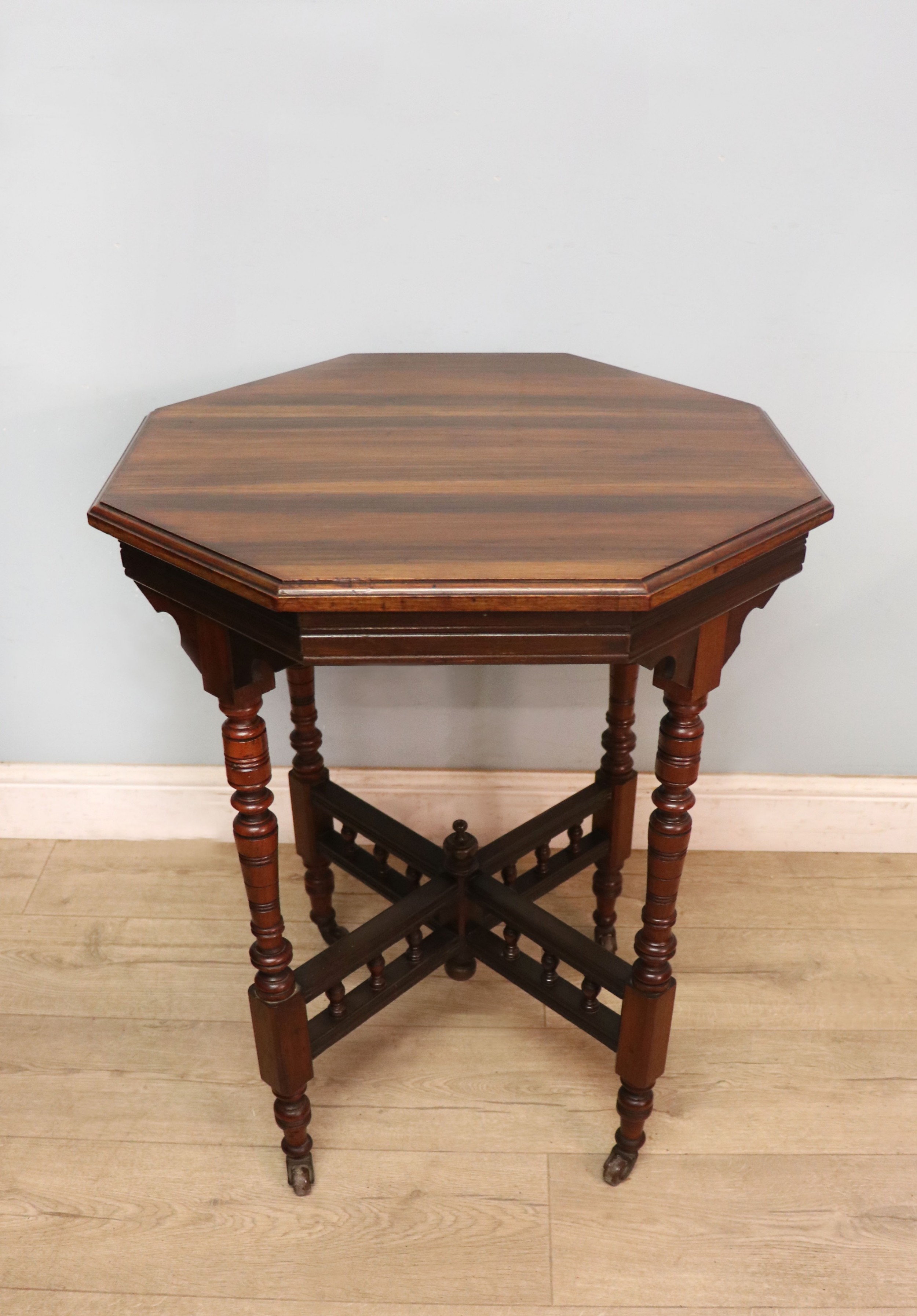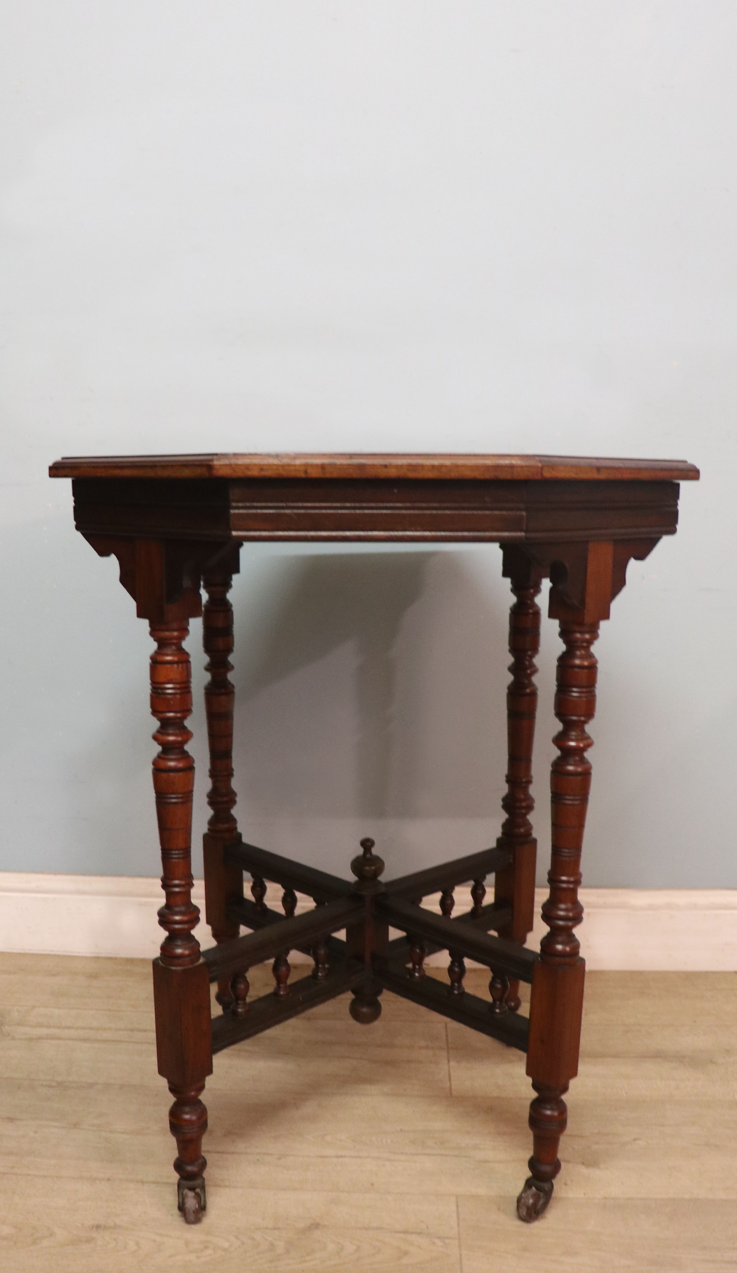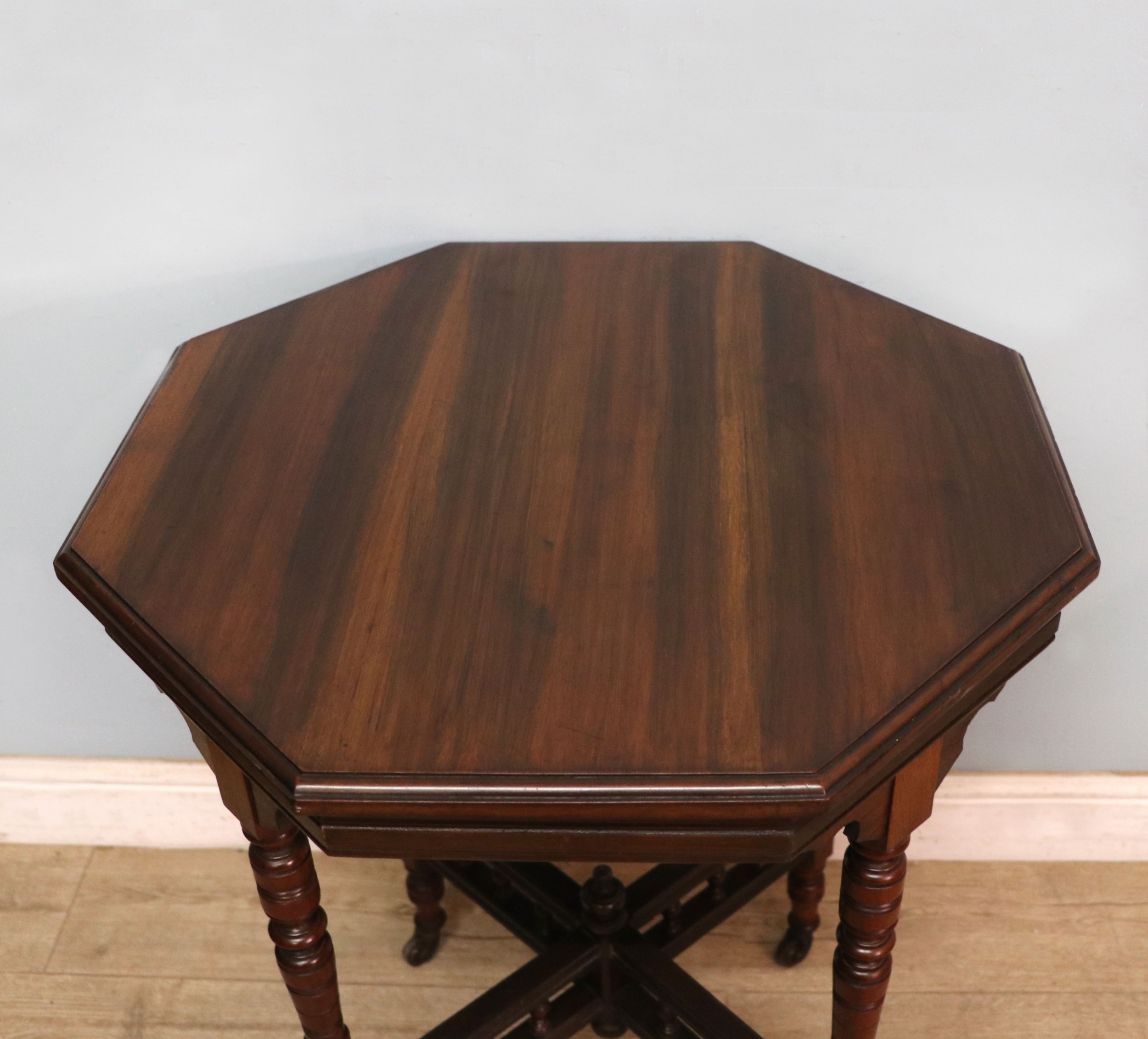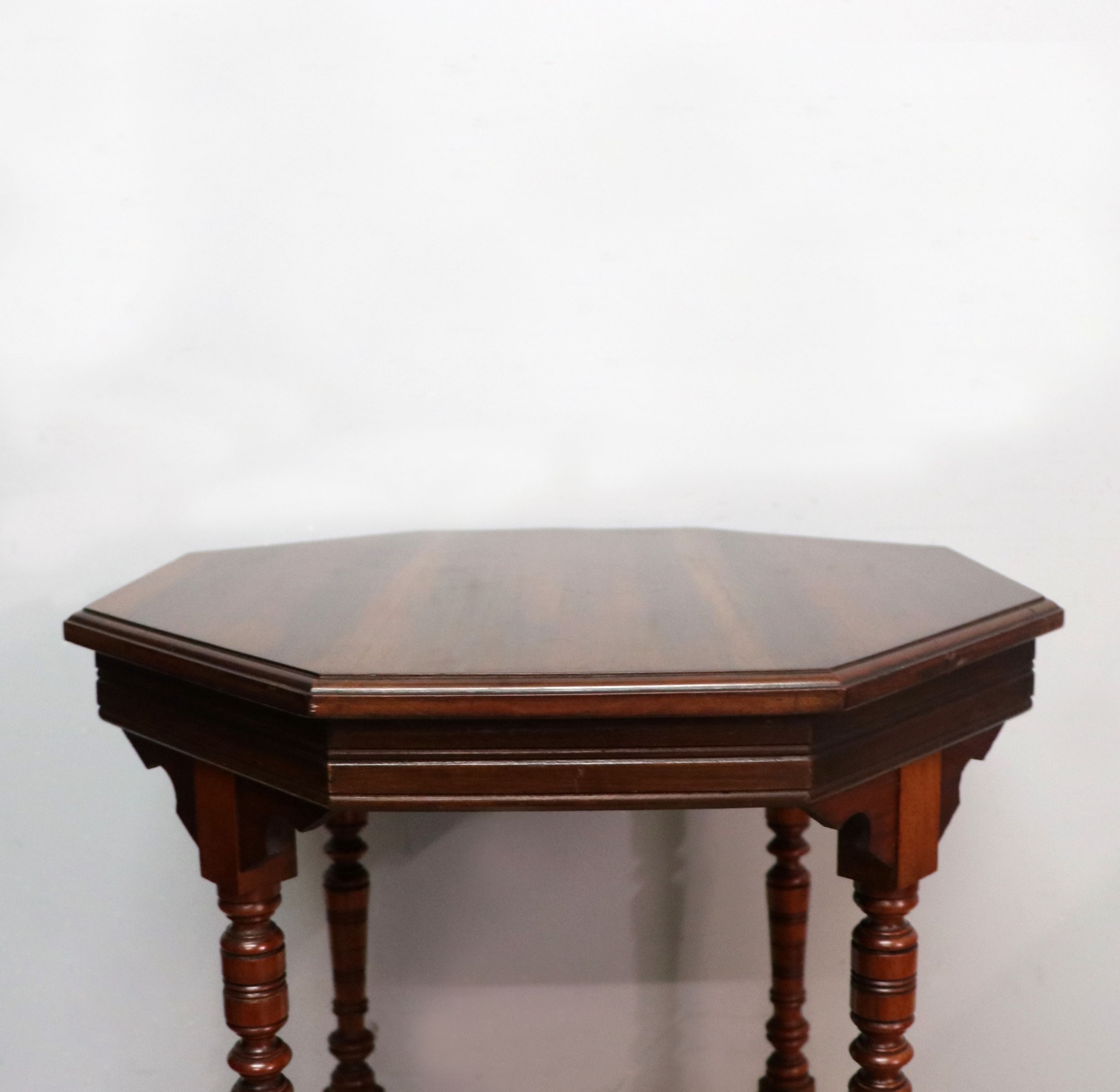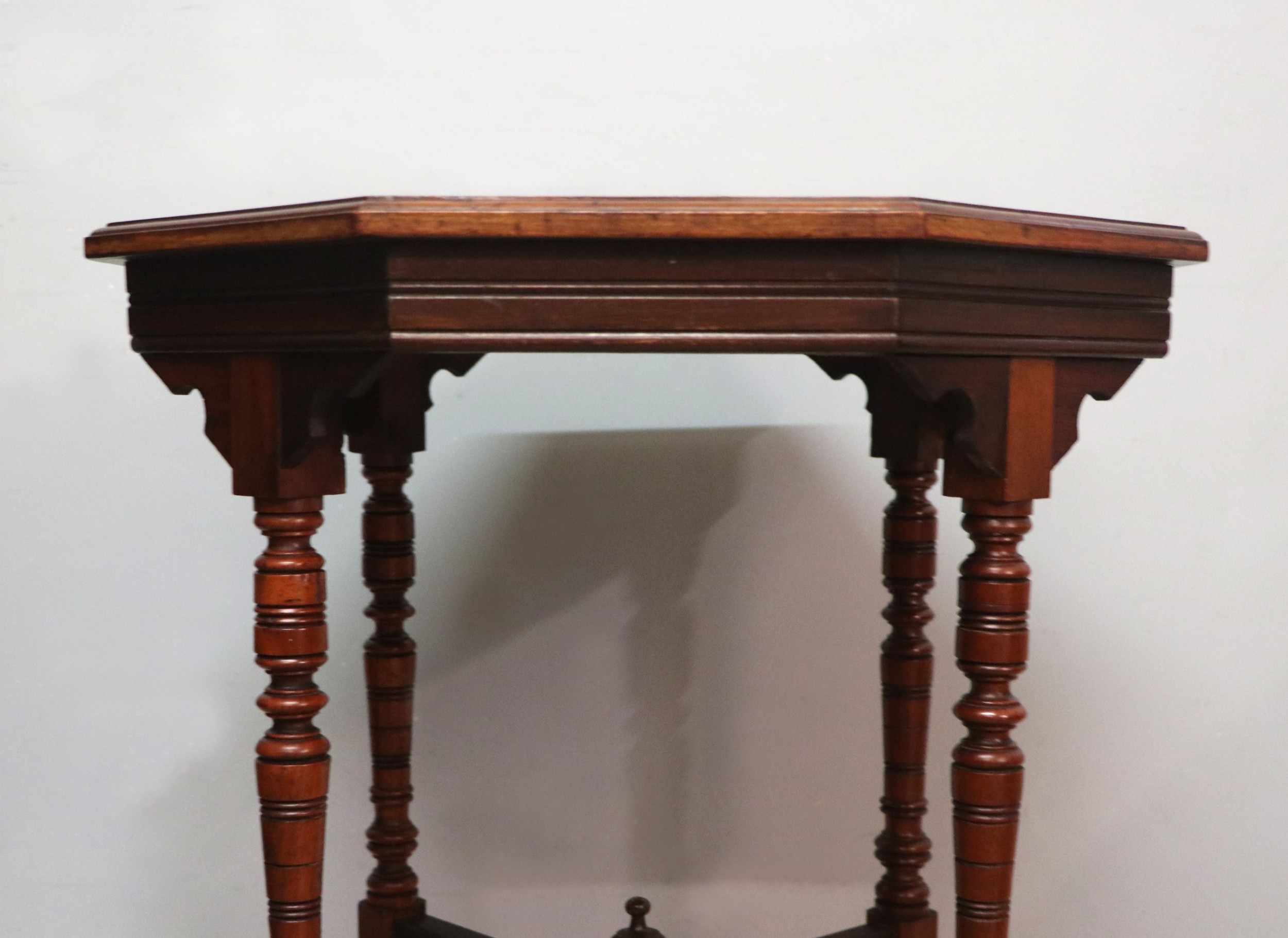 Achteckiger Beistelltisch aus Walnuss – Antiker Victorian Tisch um 1890