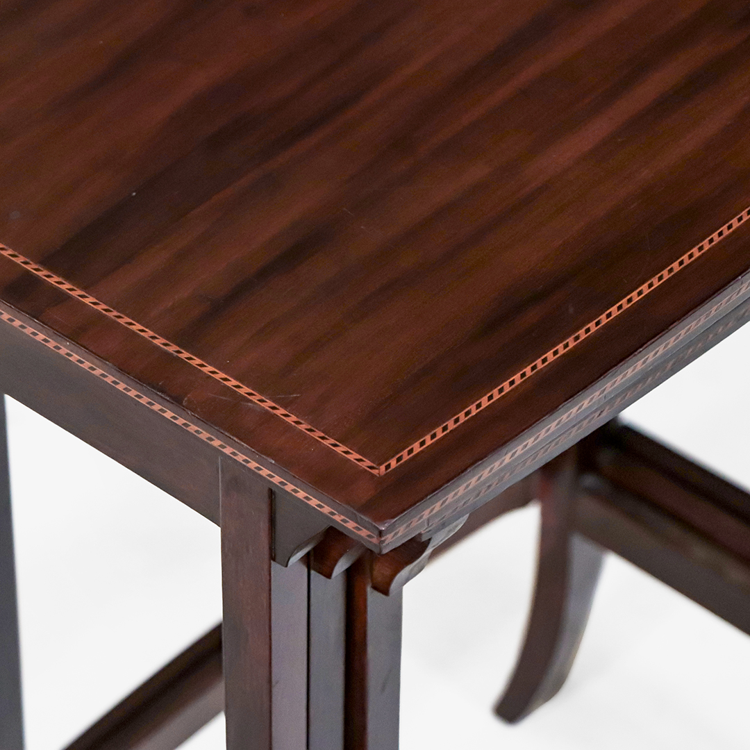 Englische Nest of Tables Edwardian – Bowfront Form mit Herringbone Intarsien