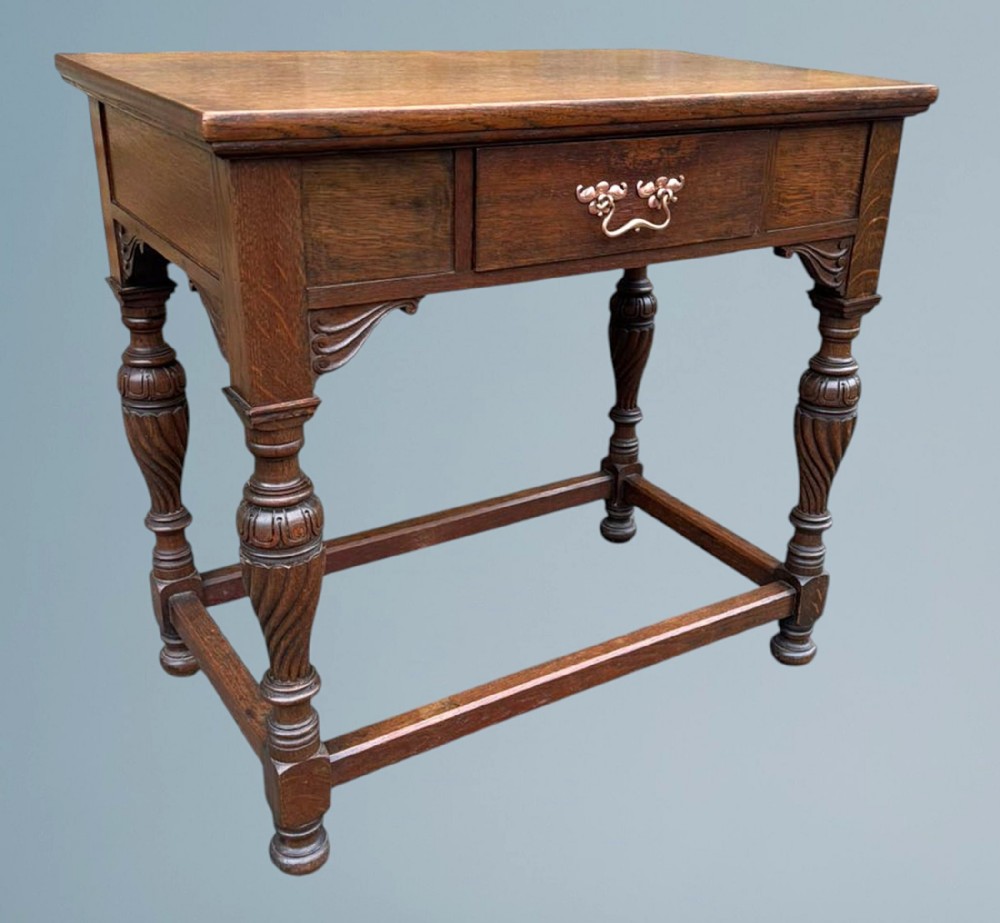 Antiker Konsolentisch Eiche Edwardian - Edwardianischer Beistelltisch mit Schublade und Patina - Antiker englischer Besitelltisch aus Eiche
