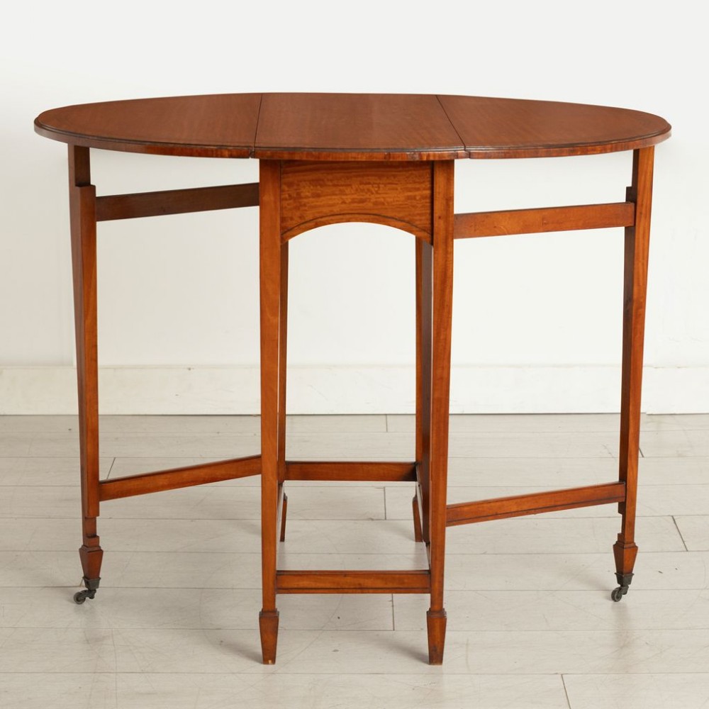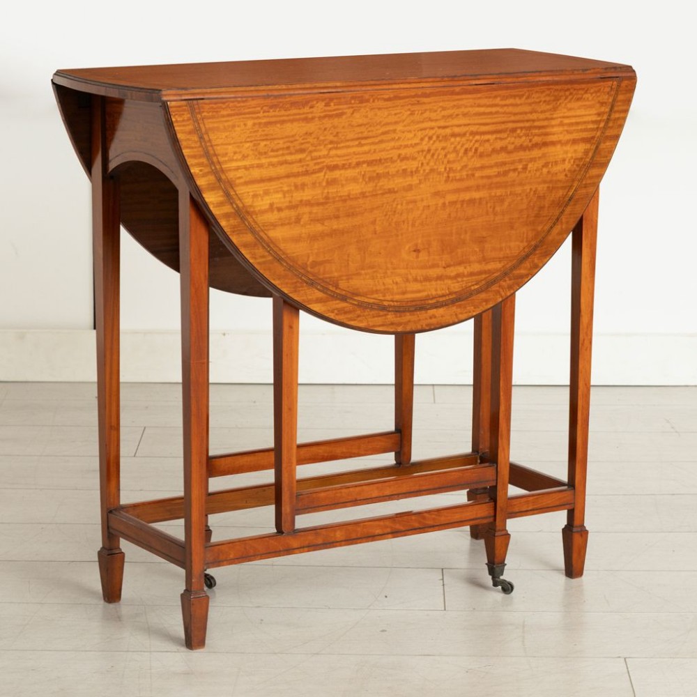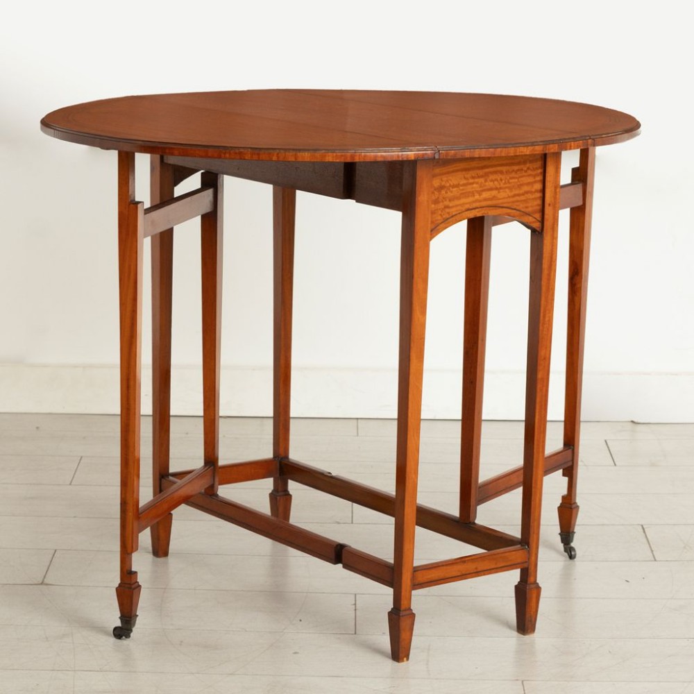 Englischer Klapptisch aus Satinholz - Antiker Drop-Leaf Table - Kleiner antiker Klapptisch aus Satinholz mit edlen Intarsien