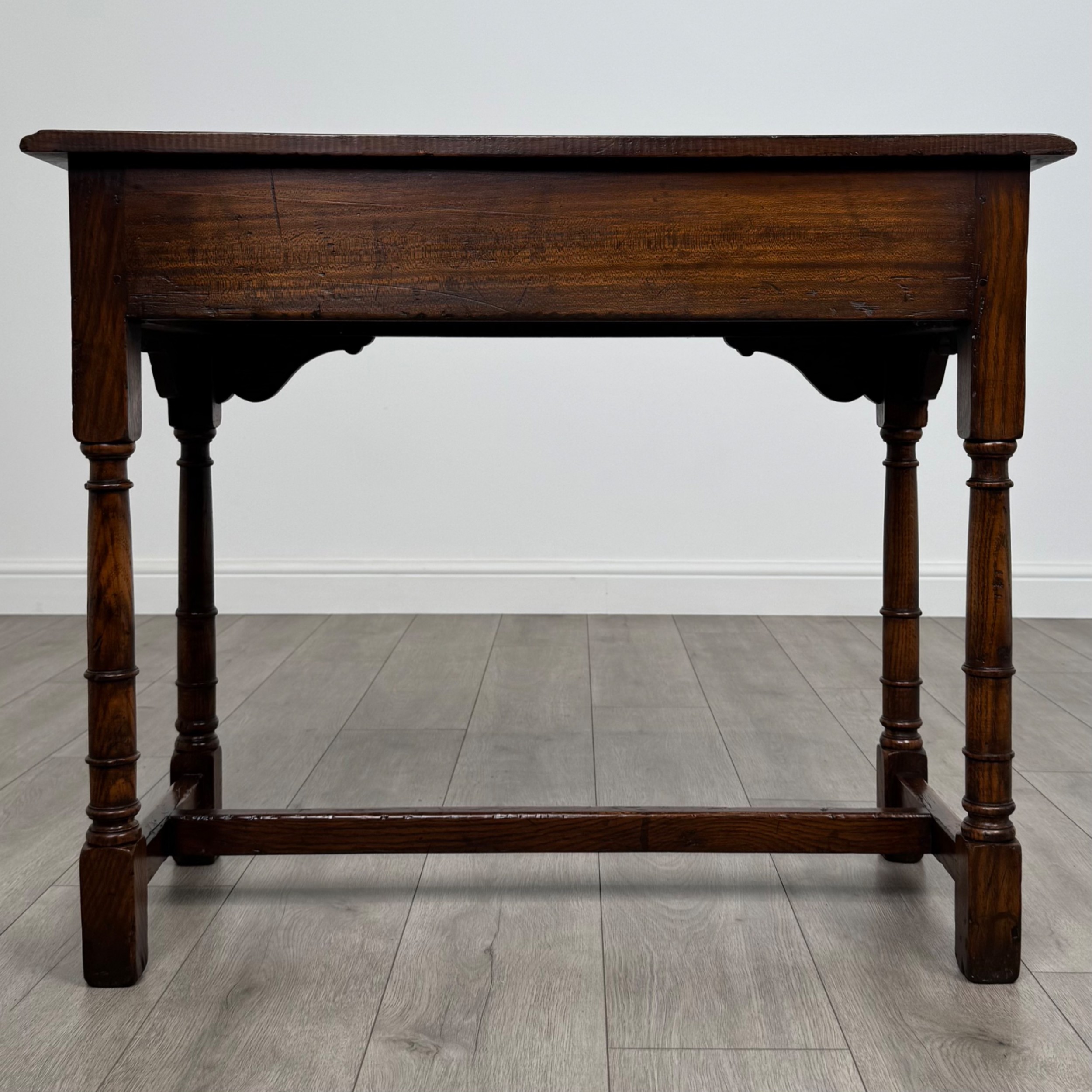 Dieser antike Eichentisch aus dem frühen 20. Jahrhundert ist ein Beispiel feiner Edwardian Möbelkunst. Gefertigt aus massiver Eiche, überzeugt er durch stabile Bauweise und klassisches Design. Der Tisch steht auf gedrechselten Beinen, die durch eine kräftige Querstrebe verbunden sind – sowohl stabilisierend als auch optisch reizvoll.