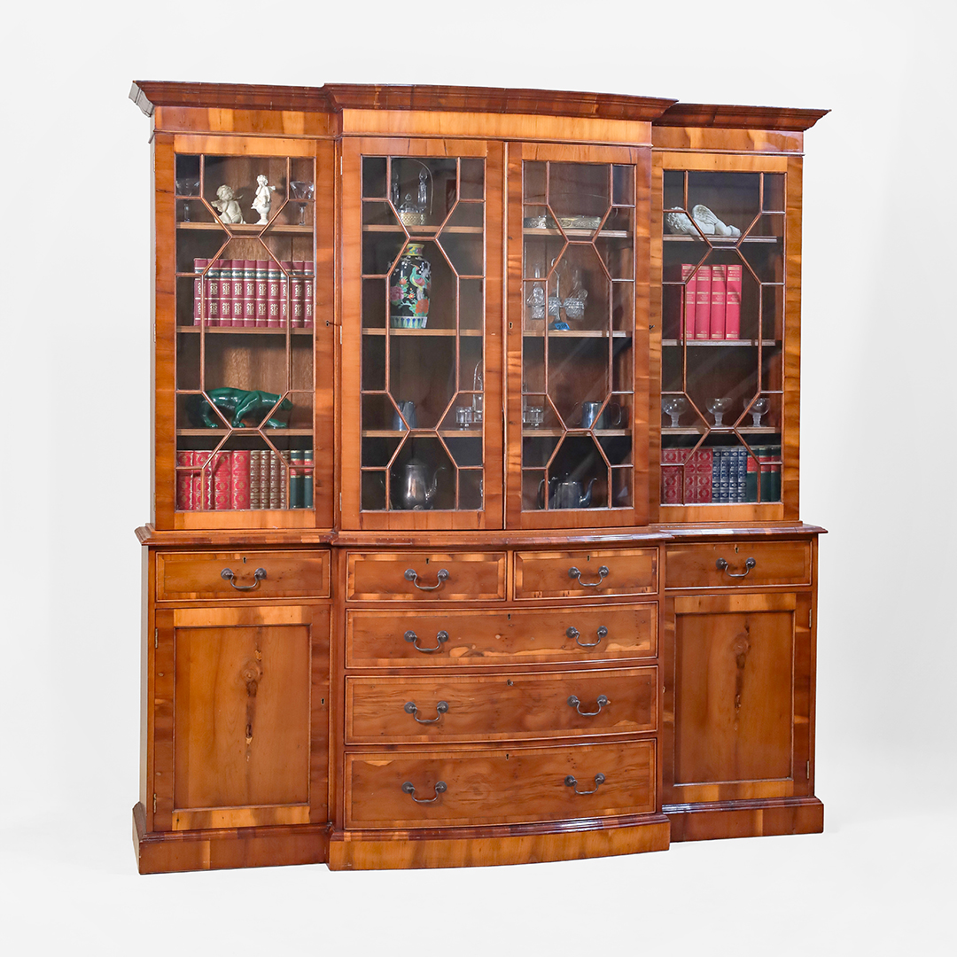 Bücherschrank Antik Stil aus Eibe – Großer englischer Breakfront Bookcase