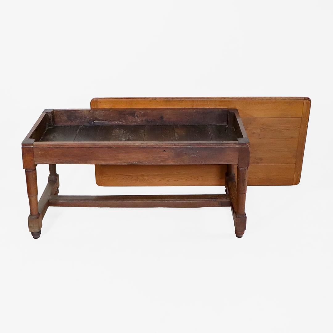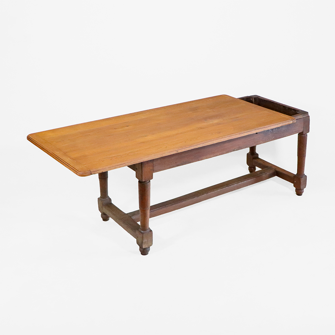 Ob als Küchentisch, Esstisch oder Arbeitstisch – dieser antike Landhaustisch passt sich vielseitig an und wird zum Mittelpunkt jedes Raumes.